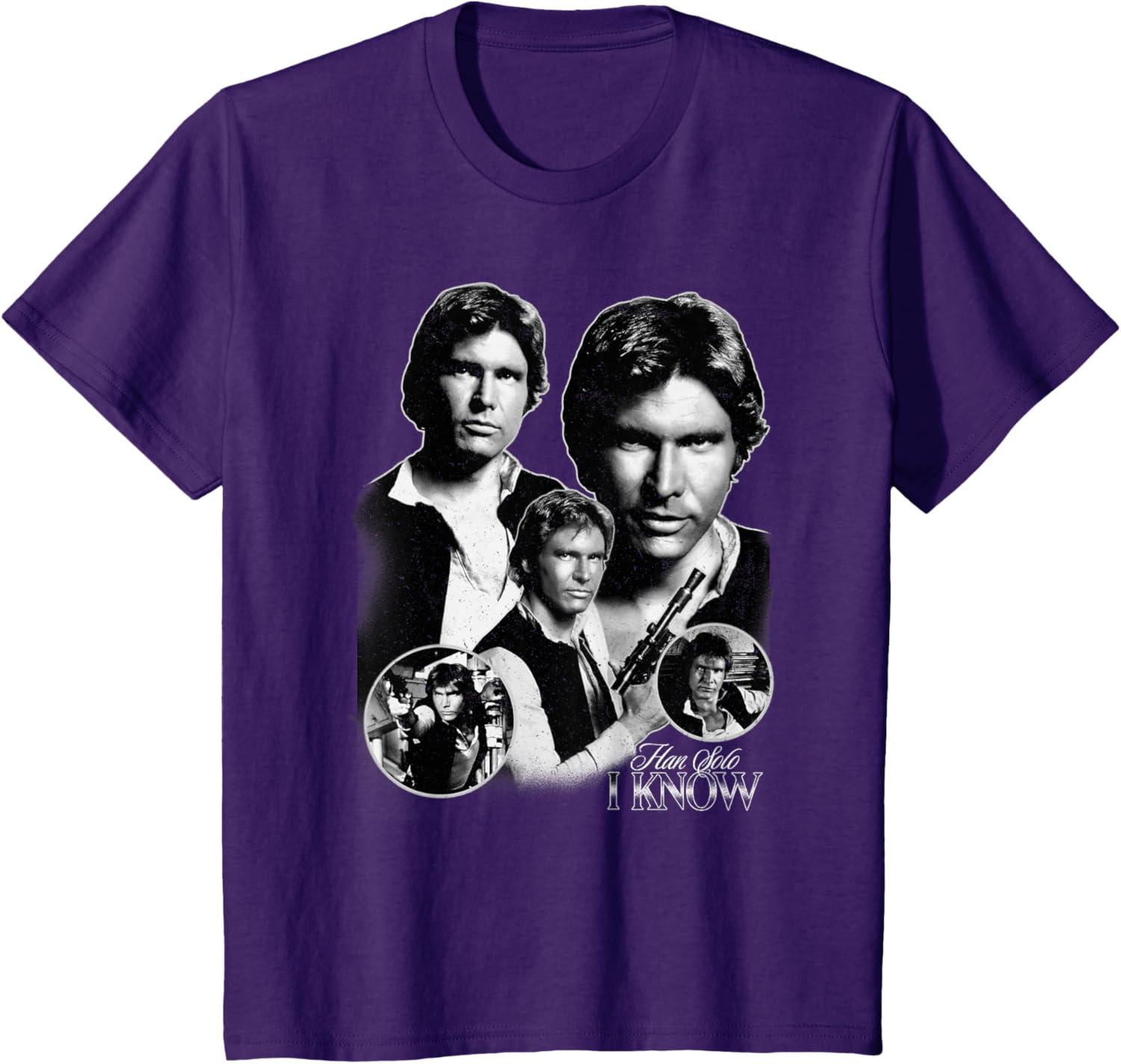 imageStar Wars Han Solo I Know Black ampamp White Portrait TShirtPurple