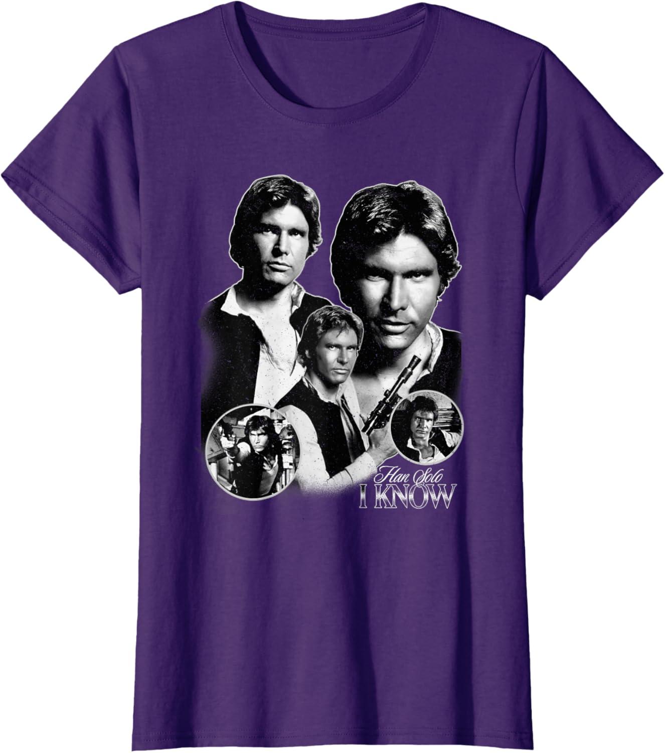 Star Wars Han Solo I Know Black & White Portrait T-Shirt(Purple)