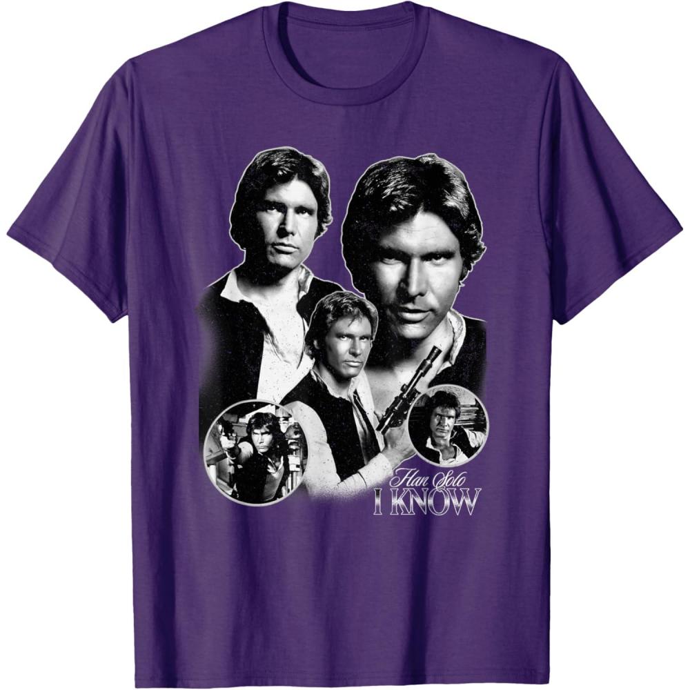 Be the first to review “Star Wars Han Solo I Know Black & White Portrait T-Shirt(Purple)”