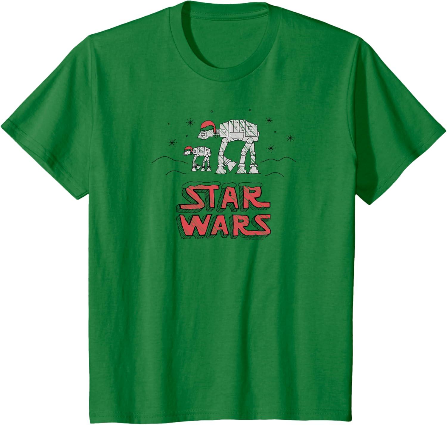 March into the holidays in galactic style with this festive Star Wars design featuring a hand-sketched style AT-AT pair donning Santa hats. Set above a bold, red scribbled Star Wars logo, this charming artwork blends Imperial strength with seasonal spirit. The rough, doodle-style texture adds a playful, handmade feel perfect for fans who love to show off their fandom with a fun and cozy twist. A must-have for holiday parties in any galaxy.