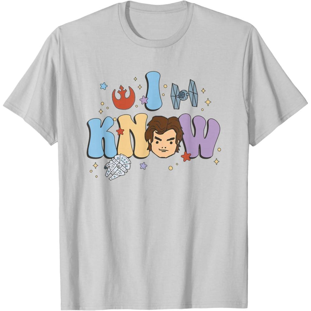 Star Wars I Know Han Solo Cartoon Icons Retro Logo T-Shirt(Silver Grey)