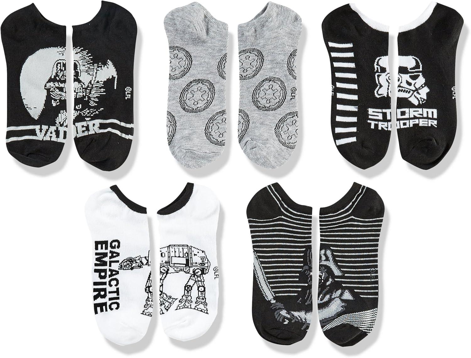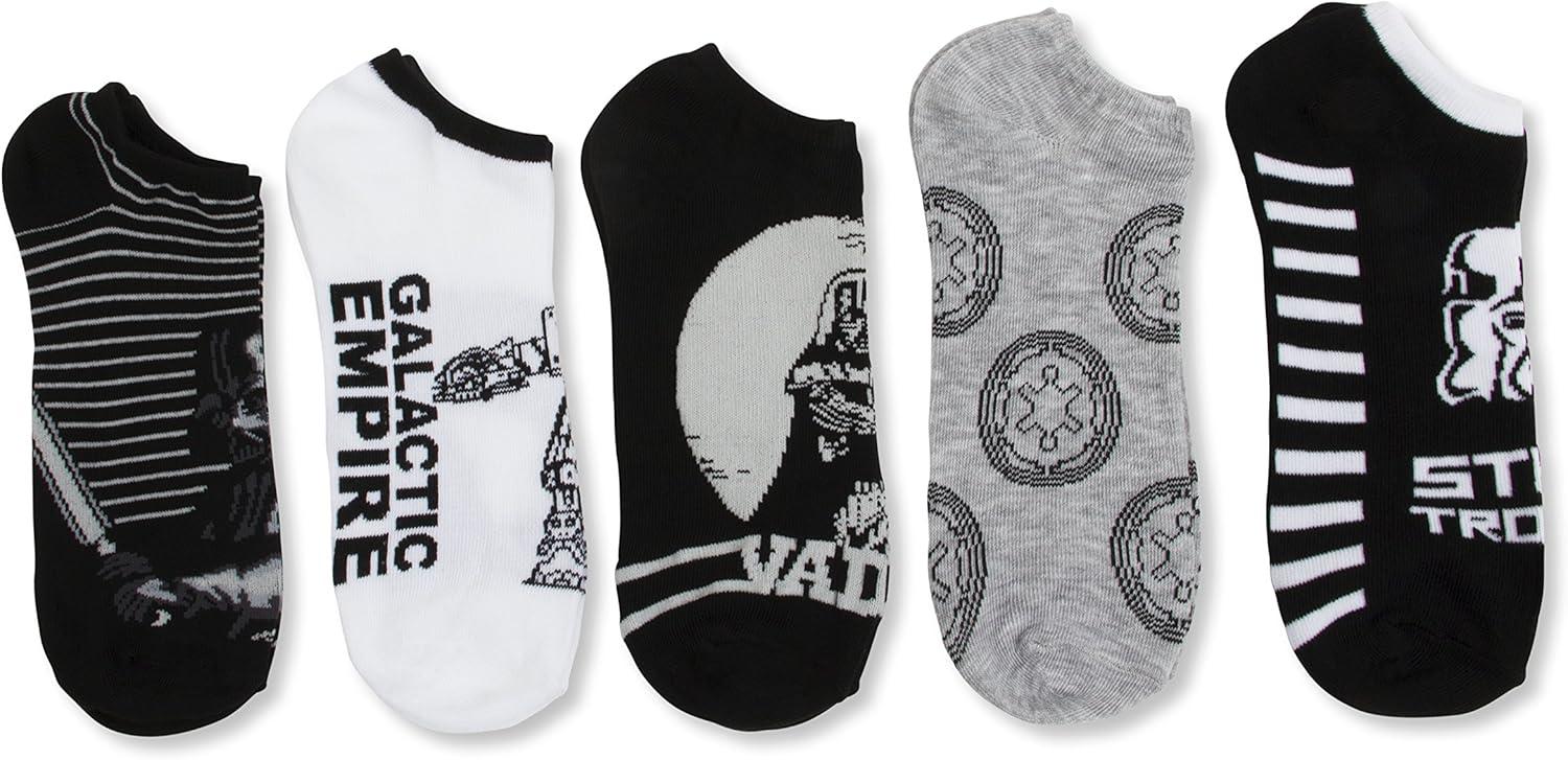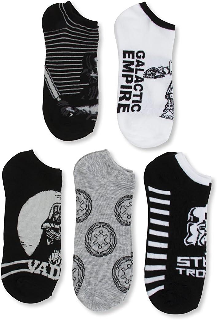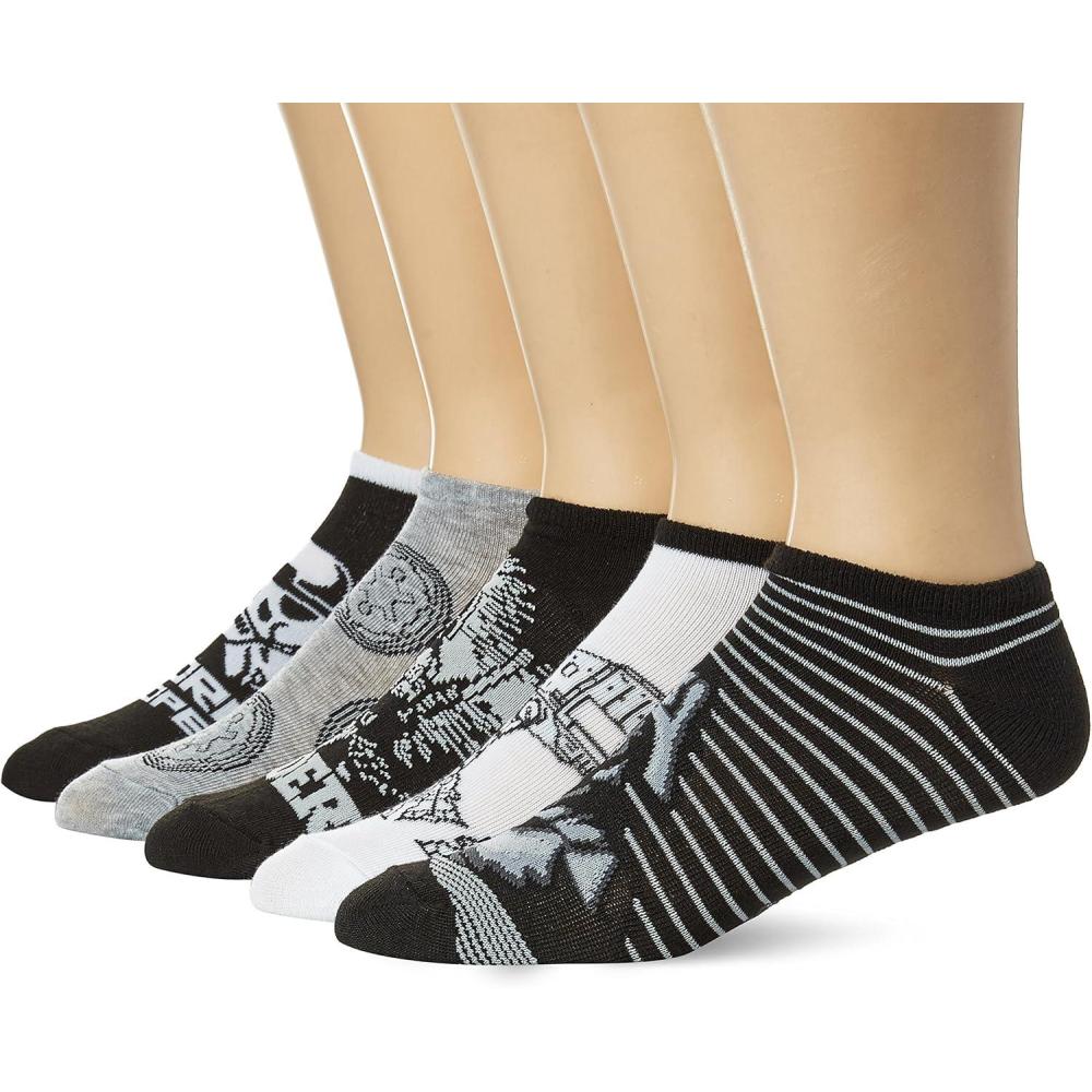 This assortment of Star Wars socks includes a variety of 5 no show sock pairs with different prints. The fun designs are perfect for all Star Wars fans and will bring a smile to anyone’s face. These character socks are machine washable and are made of durable and breathable fabrics consisting of 98% polyester and 2% spandex. Five designs to a pack offer variety and flexibility. Wear your favorite character to brighten your day or the day of those around you. Easy to pull on, the socks stretch over the foot and stay comfortably inside shoes. No matter if you wear these socks under your office attire or with your favorite weekend ensemble, you are sure to impress and add a bit of fun to your wardrobe.