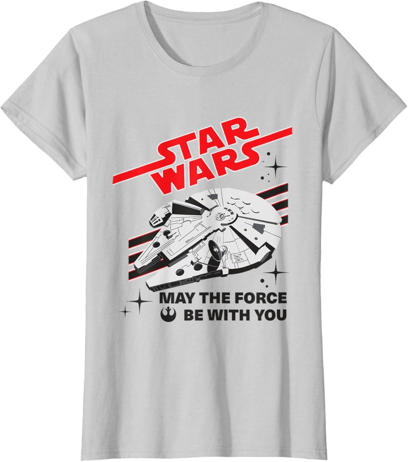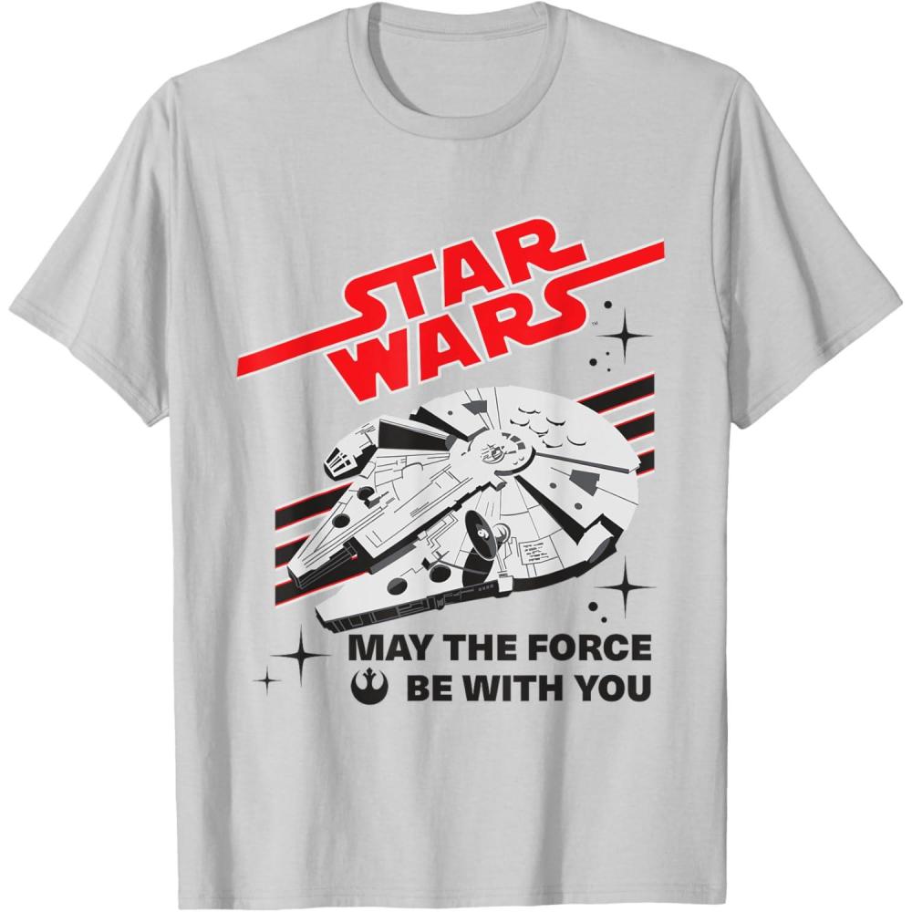 Star Wars Millennium Falcon May The Force Be With You T-Shirt(Silver Grey)