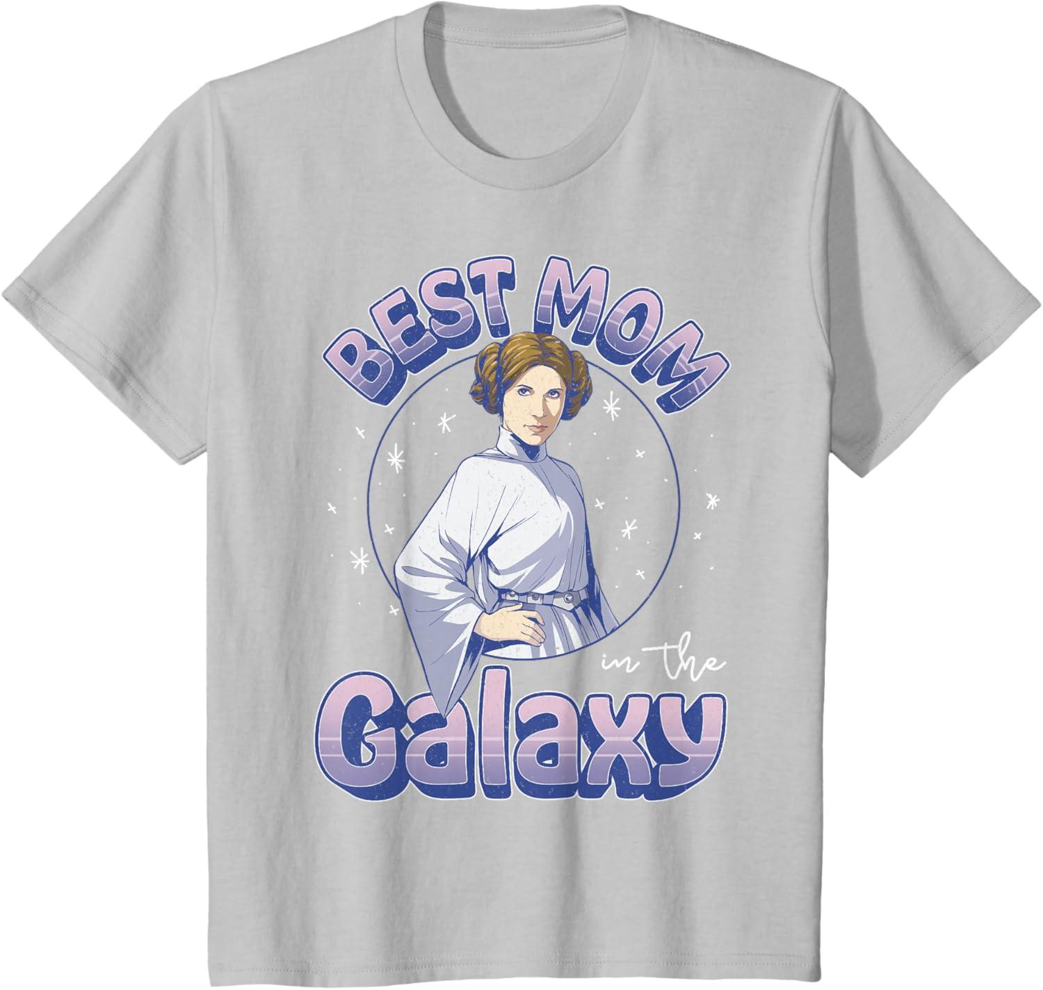 Star Wars Mother’s Day Best Mom In The Galaxy Princess Leia T-Shirt(Dark Heather Grey)