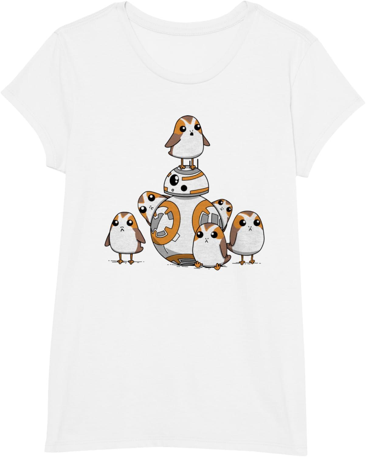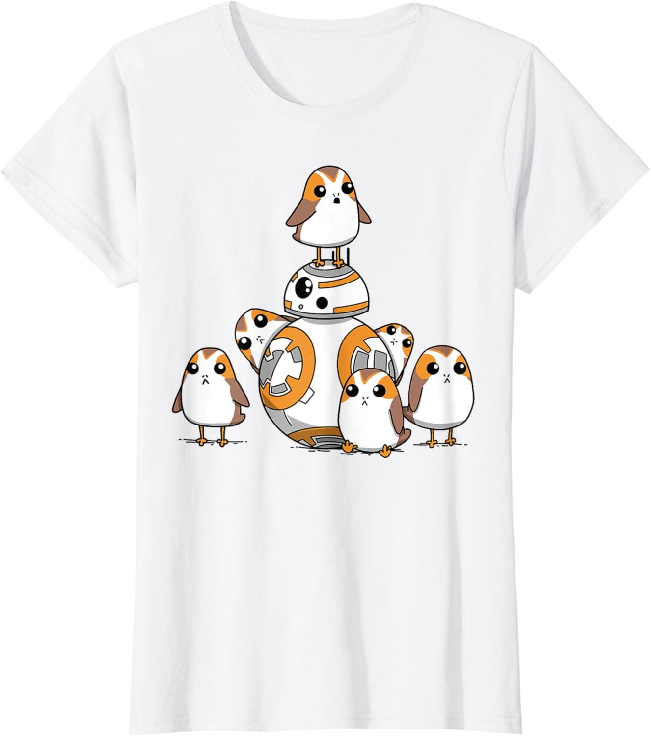 imageStar Wars Porgs Having Fun With BB8 Portrait TShirtWhite