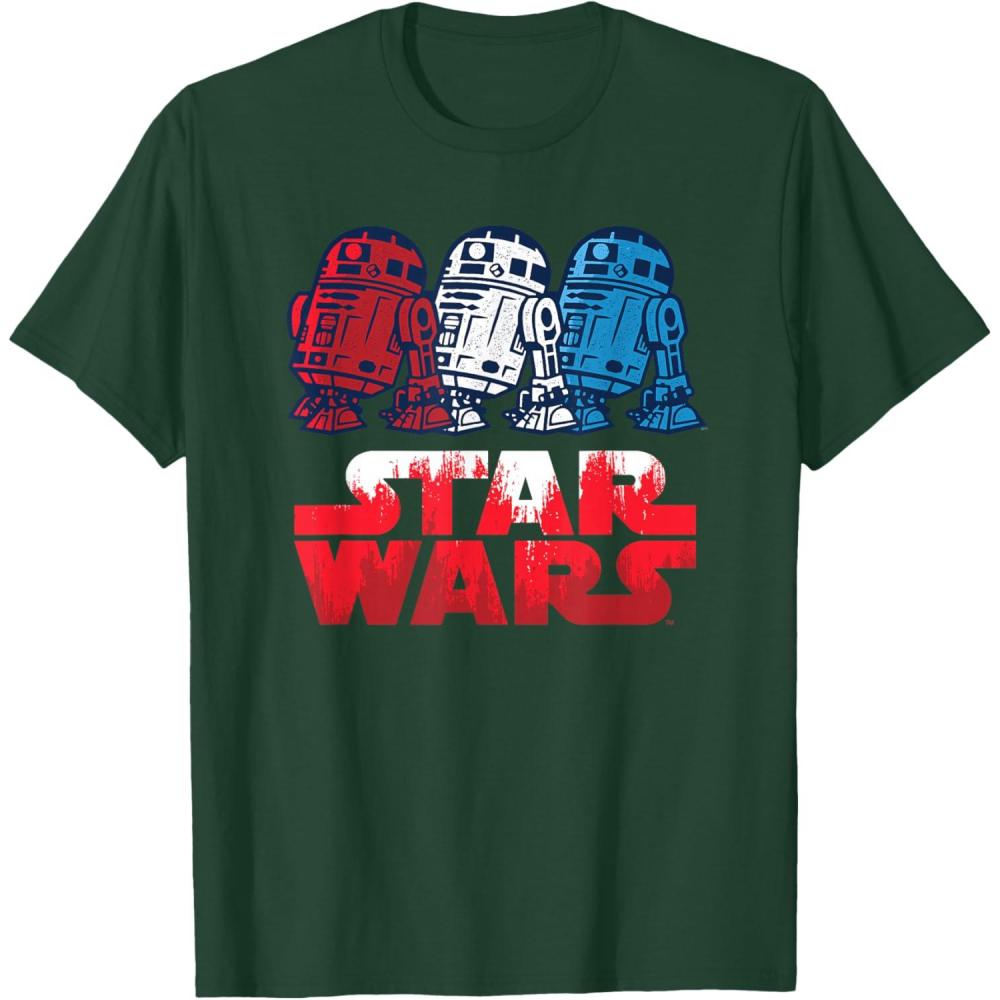 Star Wars R2-D2 Droid + Logo in Red White & Blue USA America T-Shirt(Dark Green)