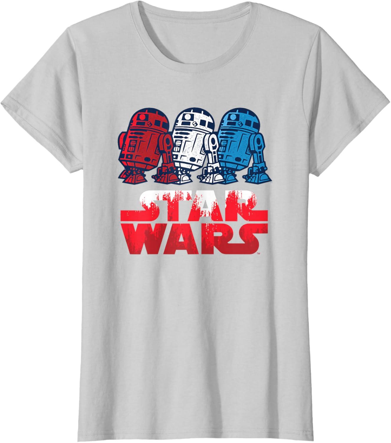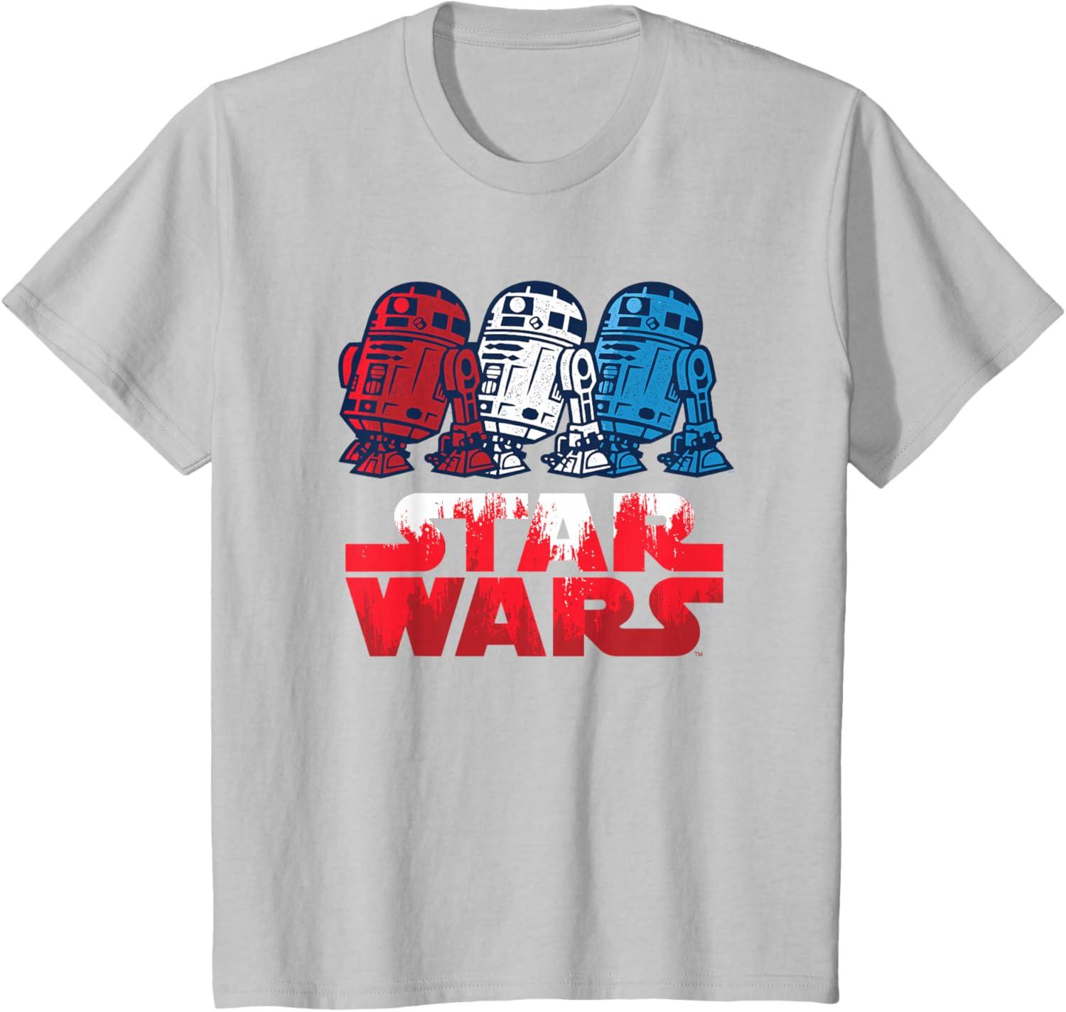 Star Wars R2-D2 Droid + Logo in Red White & Blue USA America T-Shirt(Silver Grey)