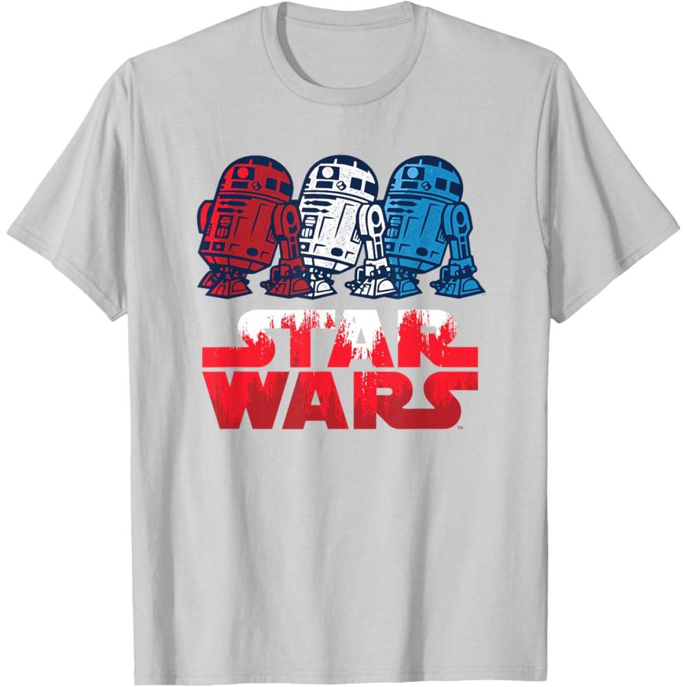 Be the first to review “Star Wars R2-D2 Droid + Logo in Red White & Blue USA America T-Shirt(Silver Grey)”