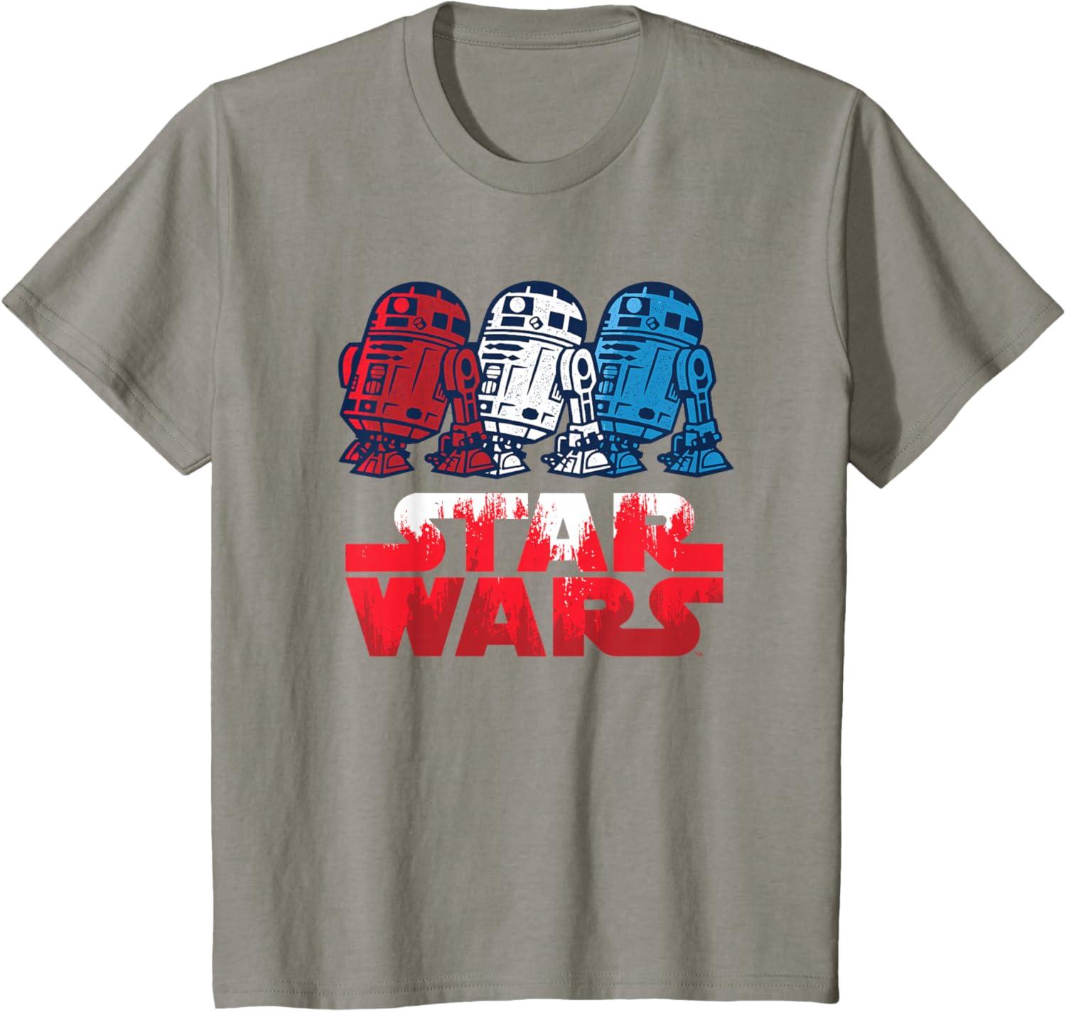 Be the first to review “Star Wars R2-D2 Droid + Logo in Red White & Blue USA America T-Shirt(Slate Grey)”