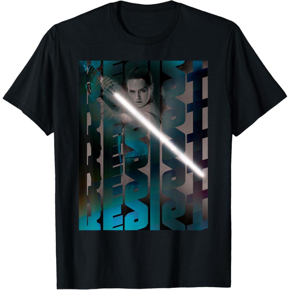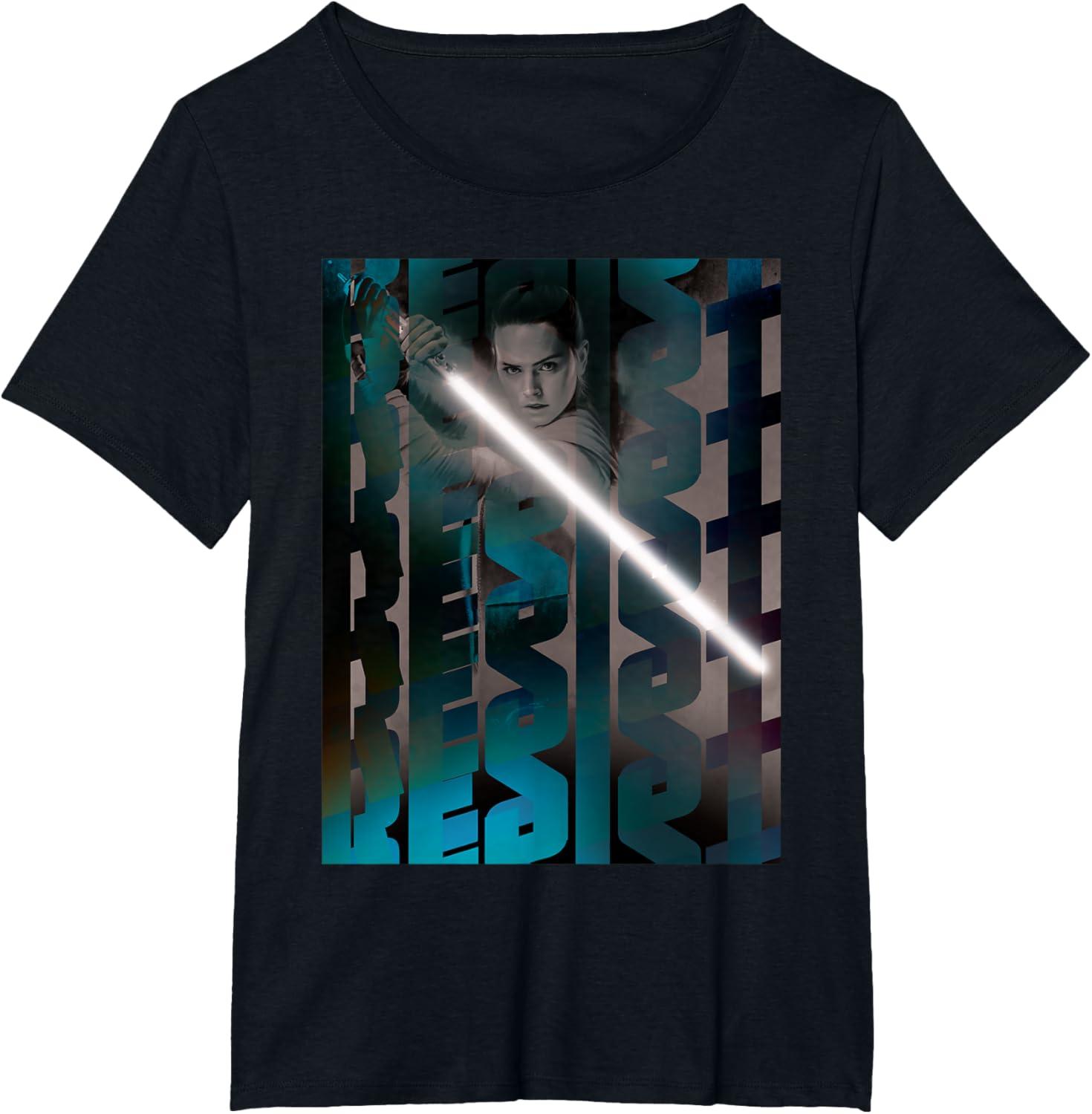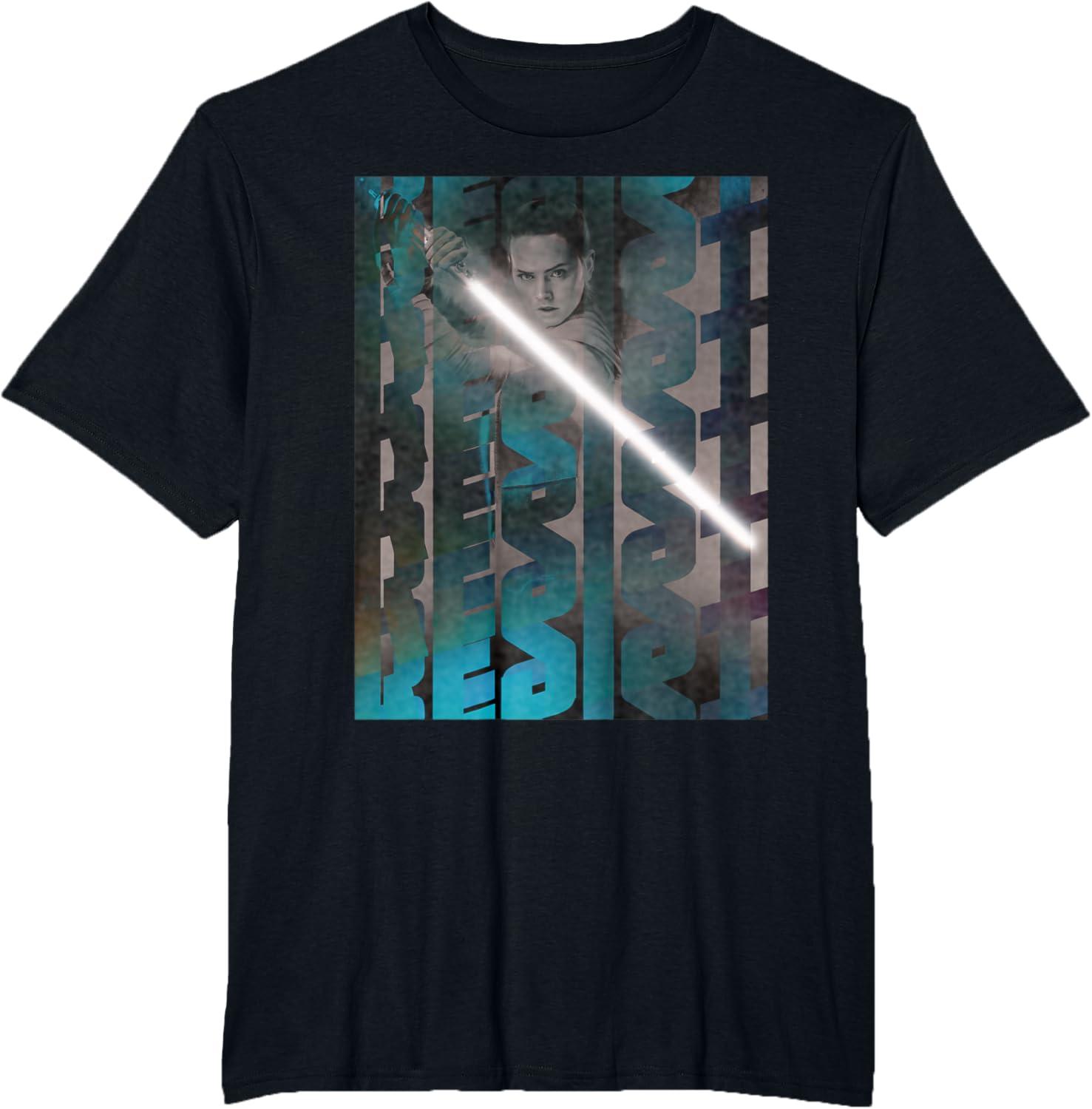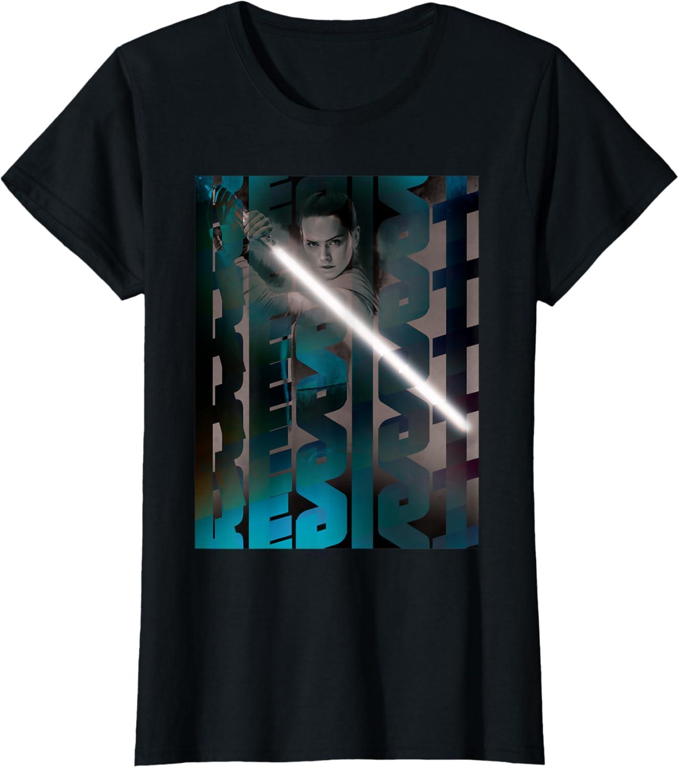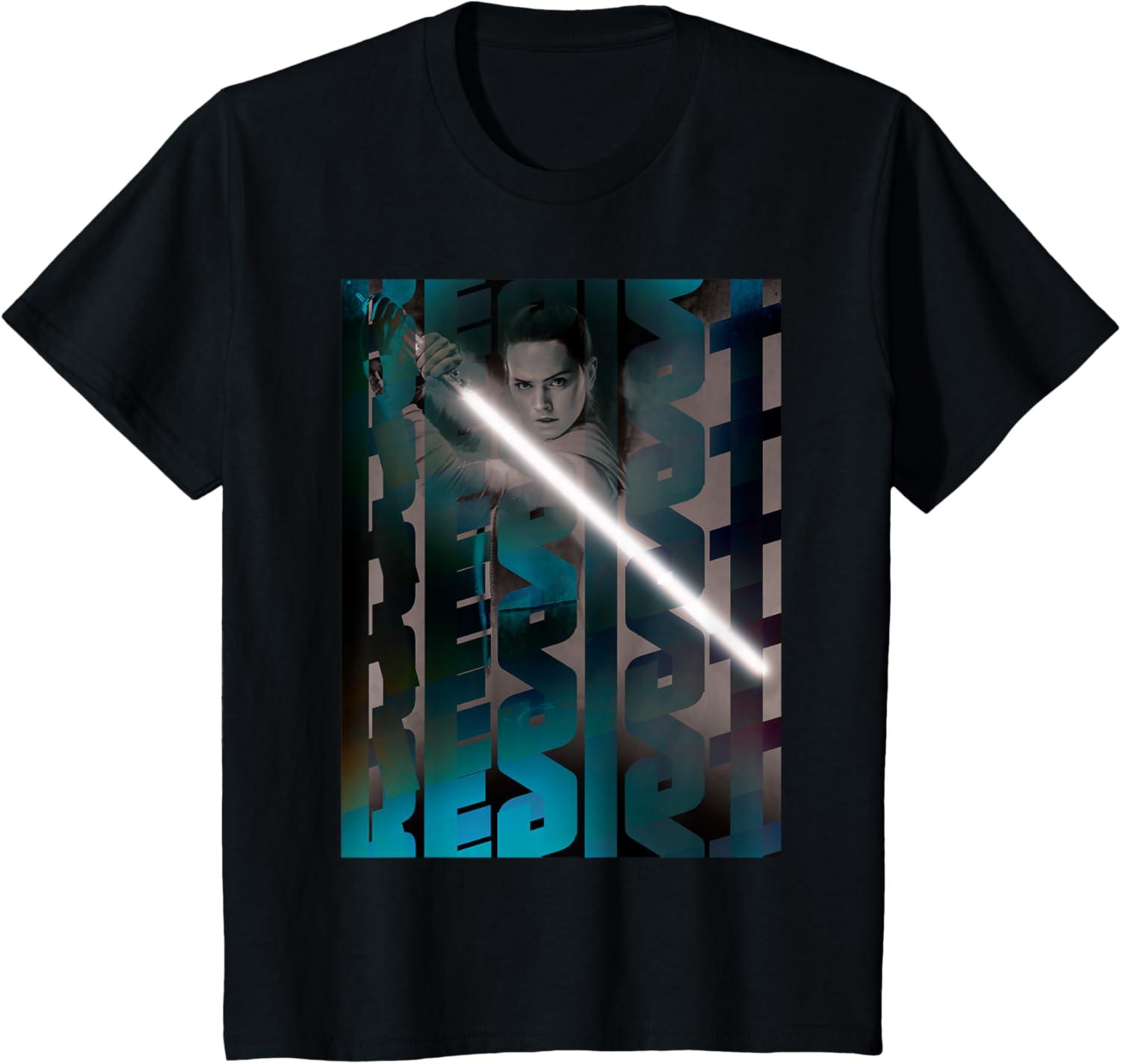 You'll feel as brave as Rey wielding a lightsaber whenever you wear this cool Star Wars tee shirt featuring a poster-style design with the words “resist.” If you're searching for the perfect gift for Star Wars fans, this Resistance t-shirt is it.