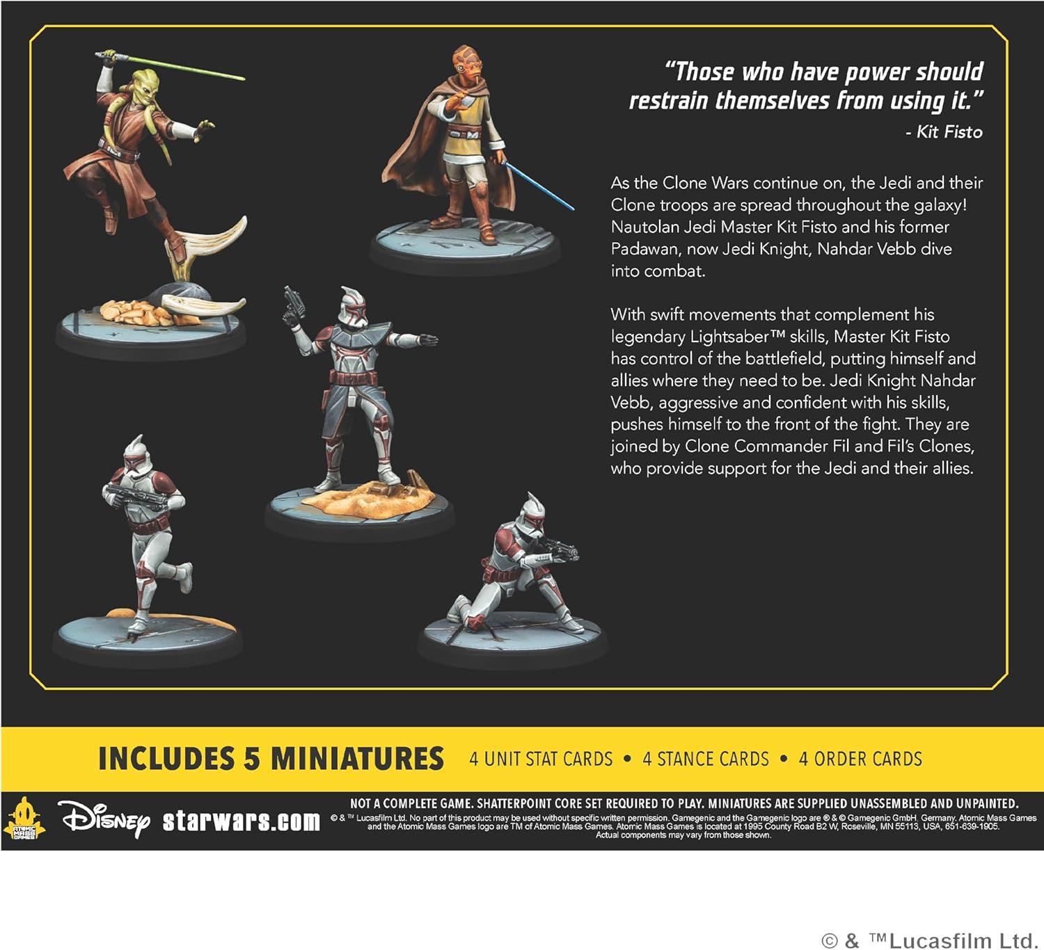 CLONE WARS CHARACTERS: Add iconic characters from The Clone Wars series to your Star Wars Shatterpoint game with Jedi Master Kit Fisto, Jedi Knight Nahdar Vebb, and Clone Commander Fil alongside Fil’s clone squad.