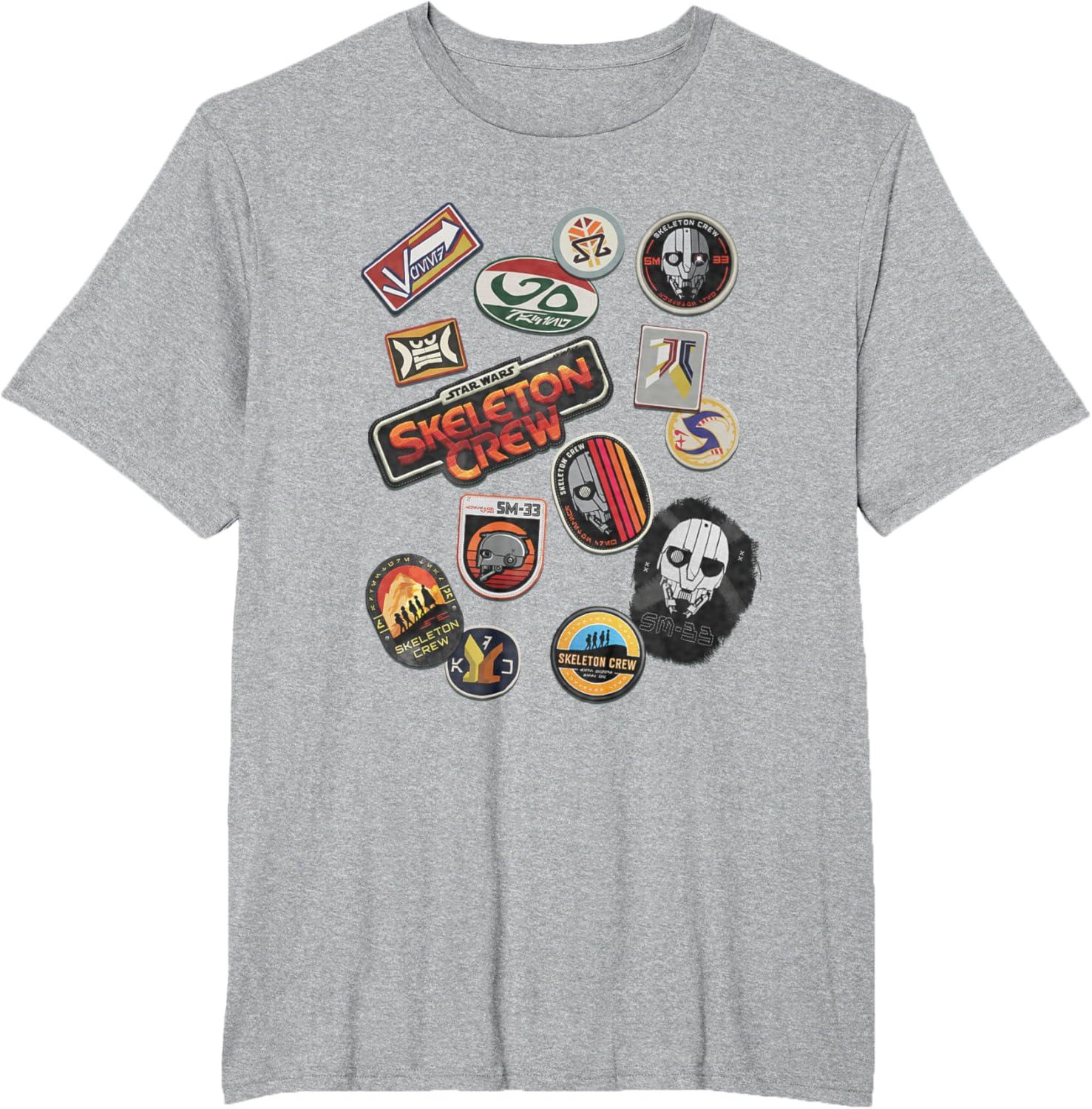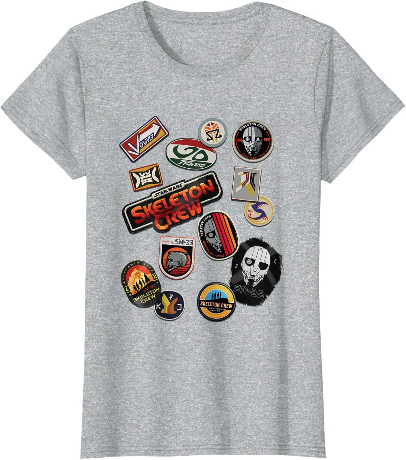 Star Wars Skeleton Crew Vintage Character Patches T-Shirt(Heather Grey)