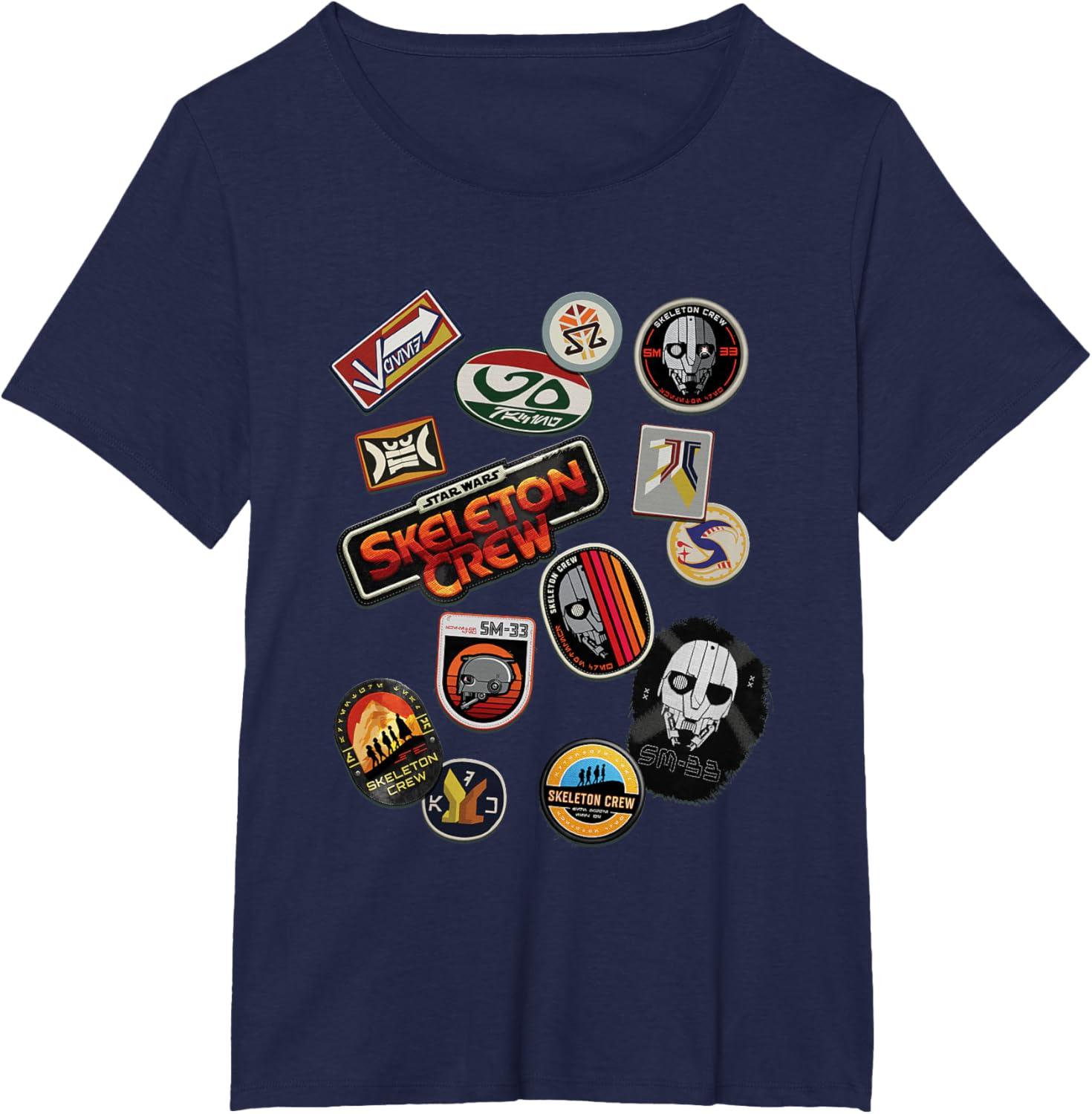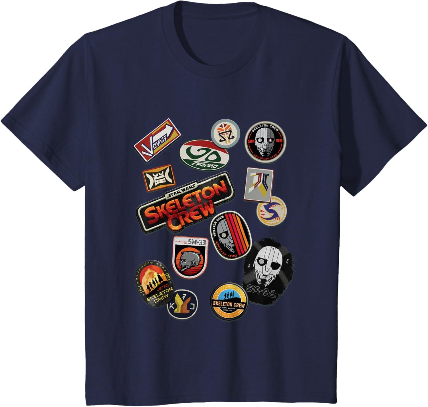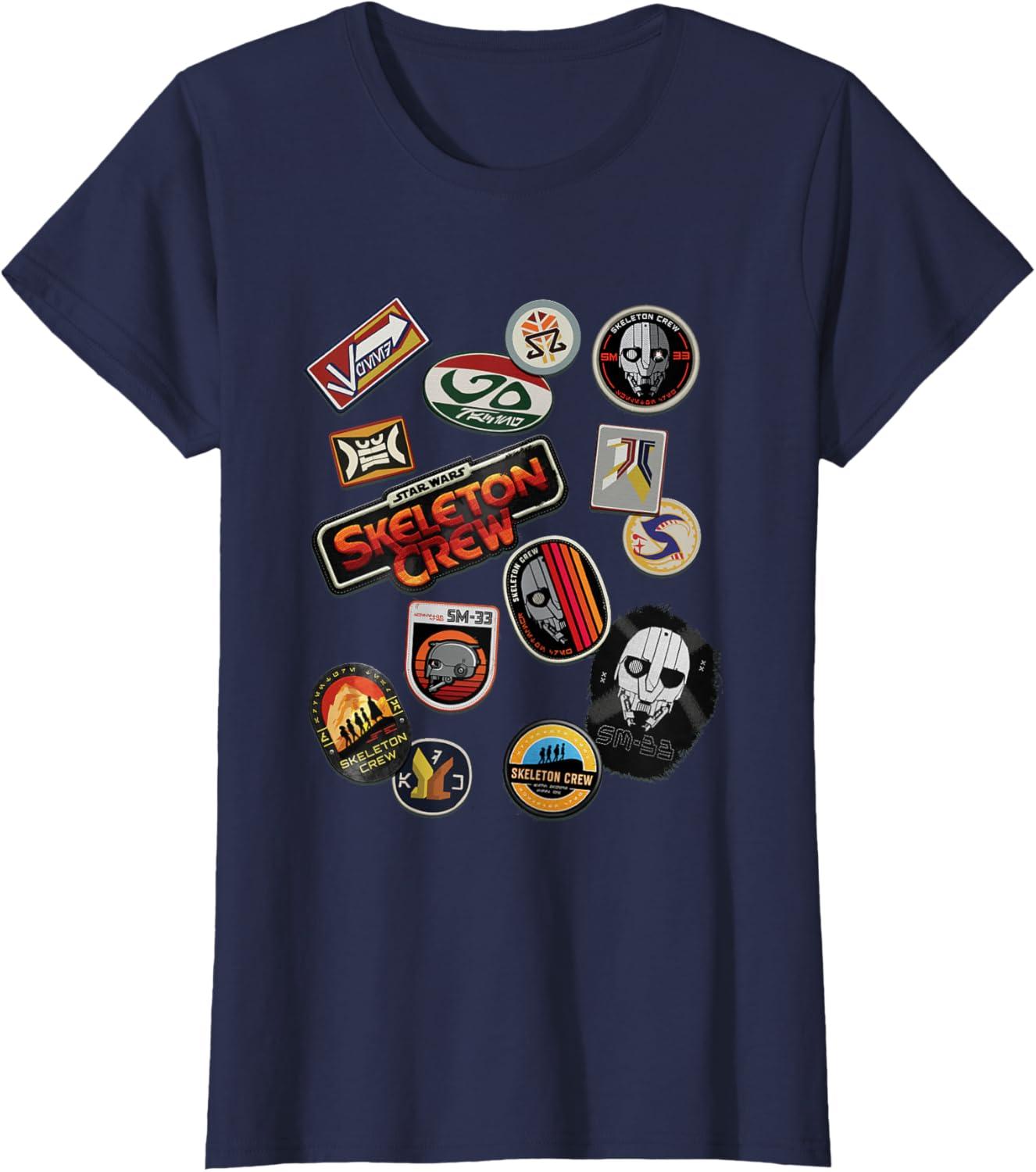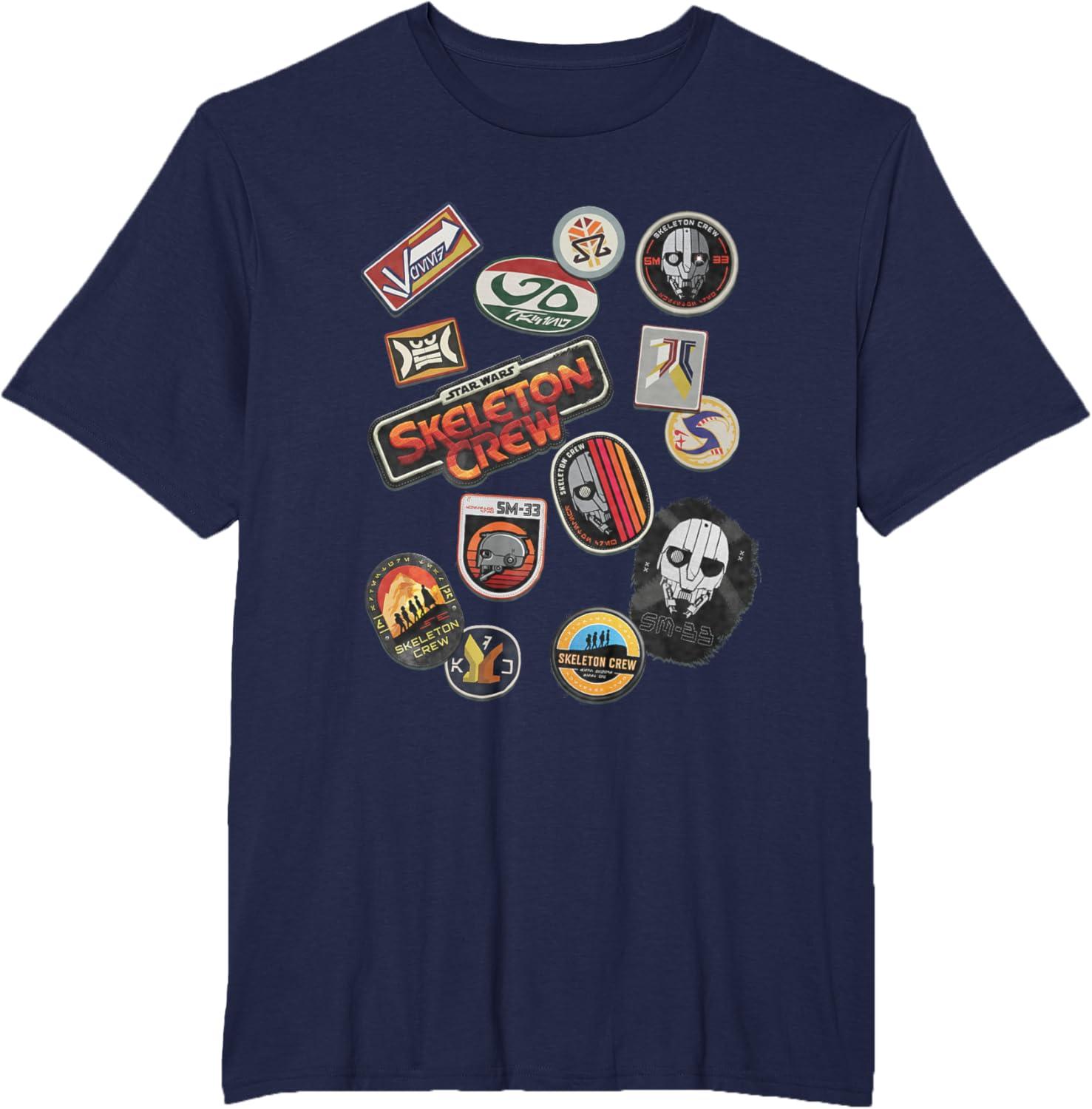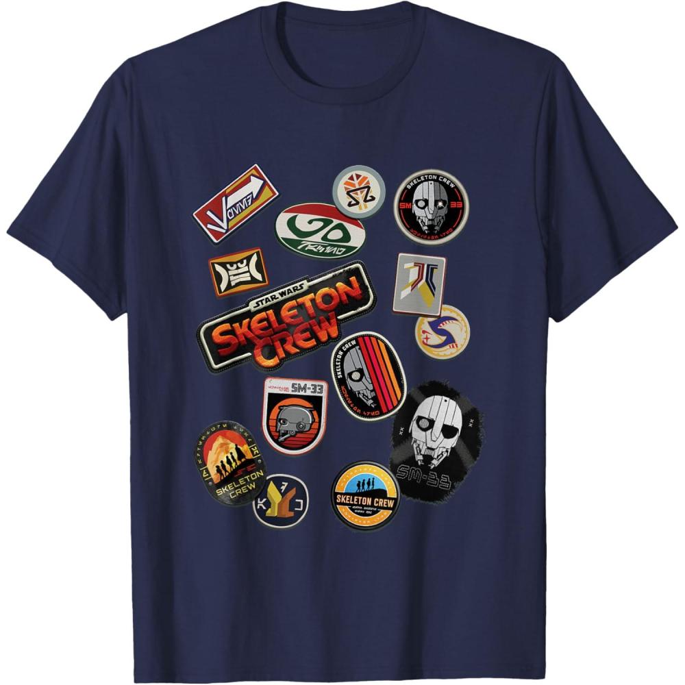 Star Wars Skeleton Crew Vintage Character Patches T-Shirt(Navy Blue)