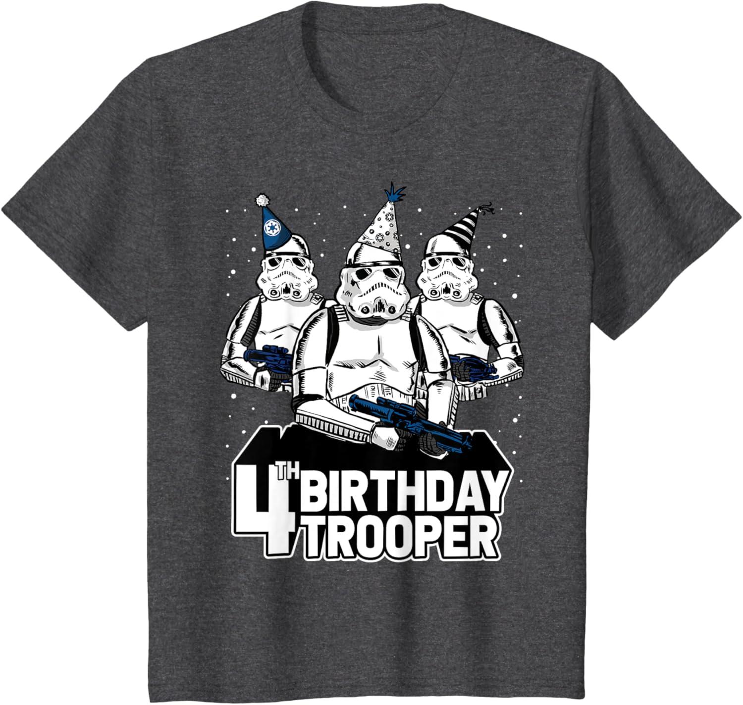 Get up to 60% off on Star Wars Stormtrooper Party Hats Trio 4th Birthday Trooper T-Shirt(Dark Heather Grey) styles during our winter sale event.