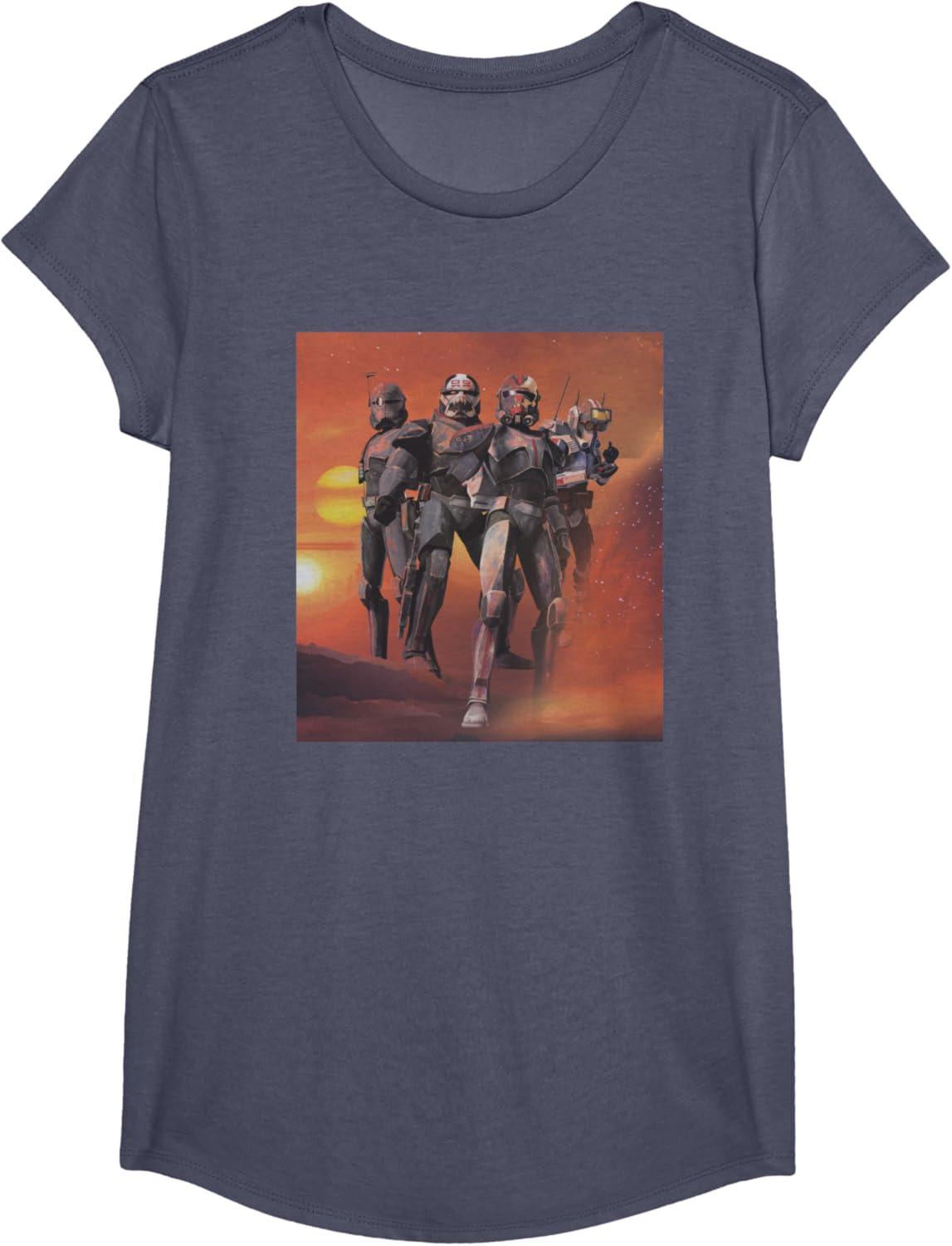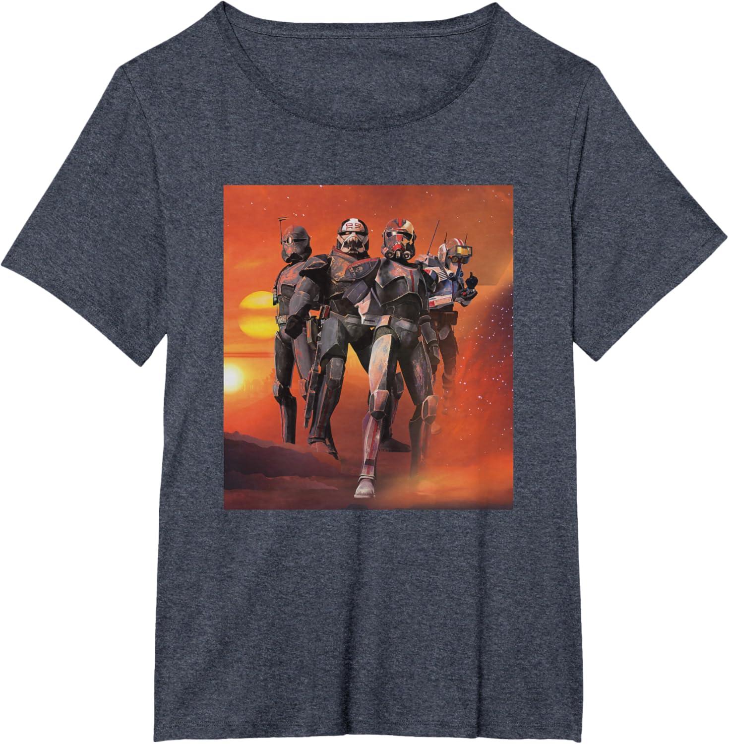 Star Wars The Bad Batch Hunter Wrecker Tech Crosshair Sunset T-Shirt(Heather Blue)