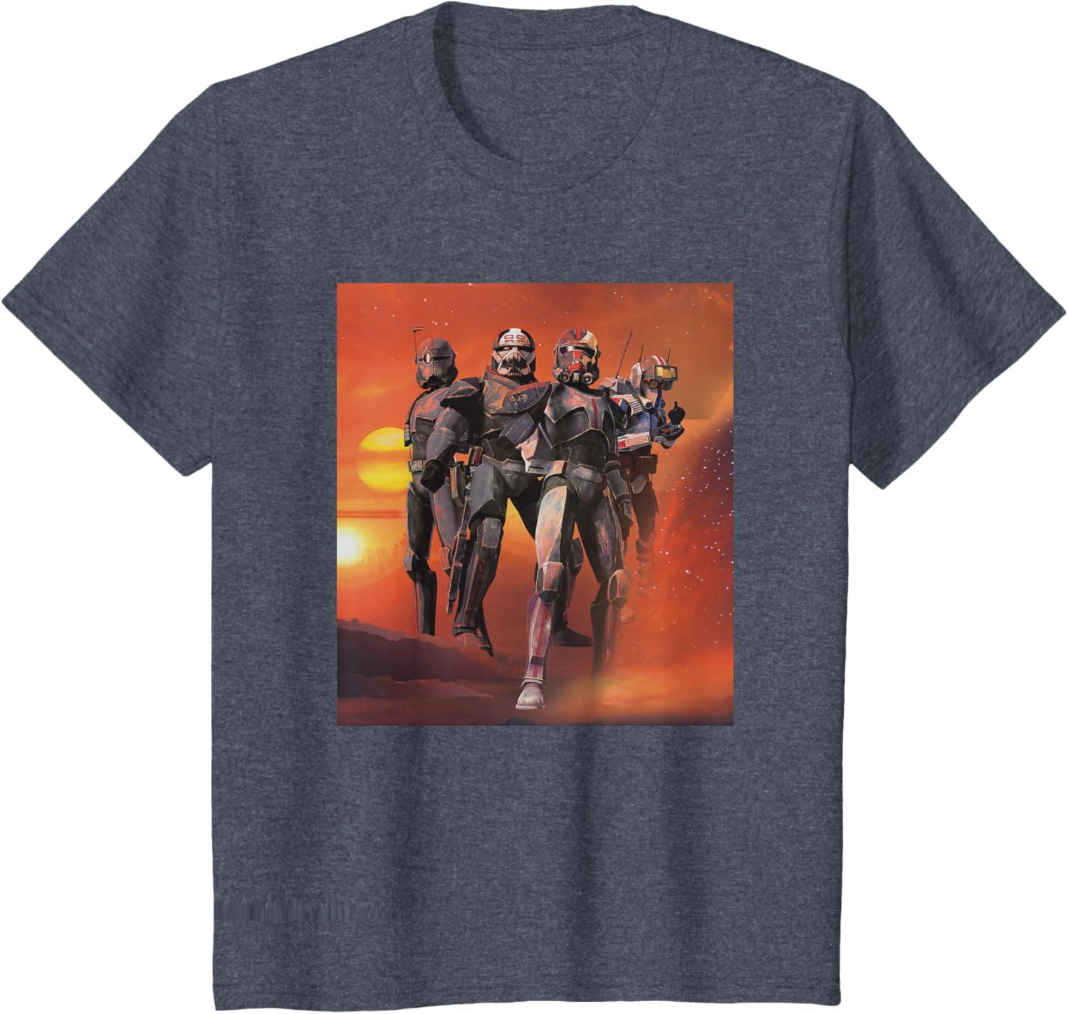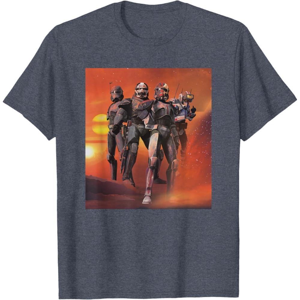 Be the first to review “Star Wars The Bad Batch Hunter Wrecker Tech Crosshair Sunset T-Shirt(Heather Blue)”