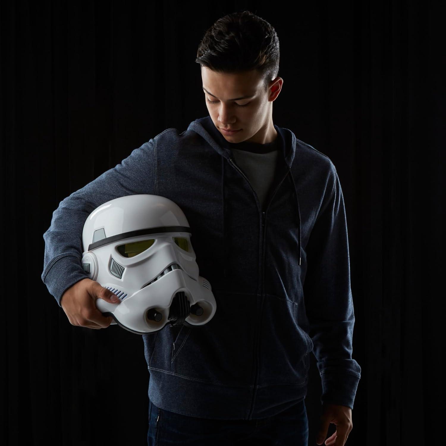 VOICE-CHANGING TECHNOLOGY: Press the side button to distort your voice to sound like a stormtrooper
