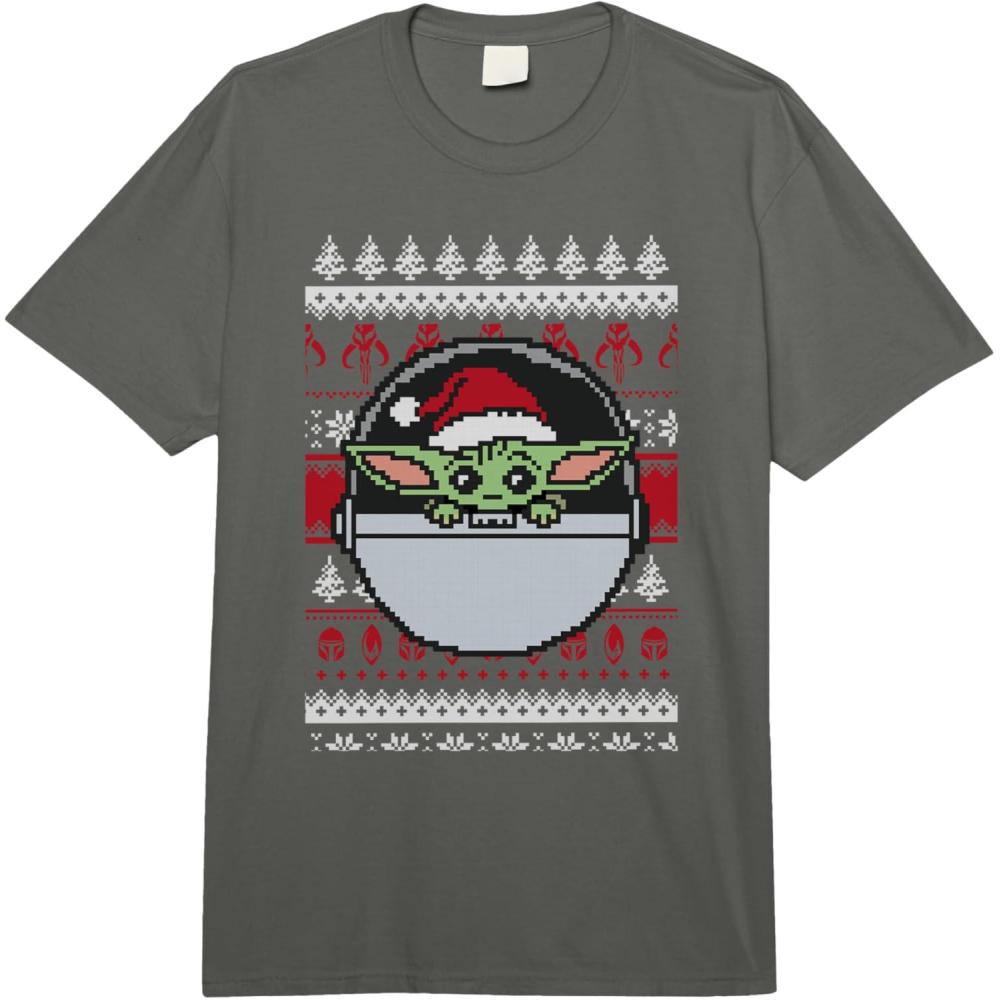 Star Wars The Mandalorian Christmas Grogu Ugly Sweater Comfort Colors Adult Heavyweight T-shirt(Dark Grey)
