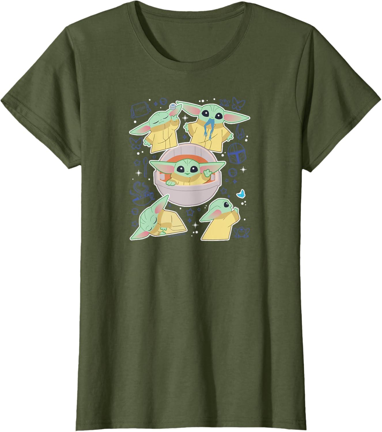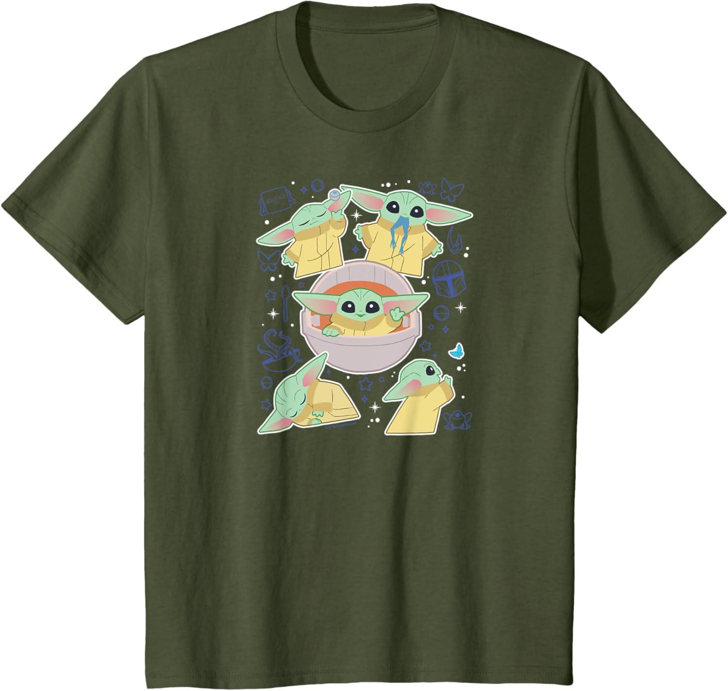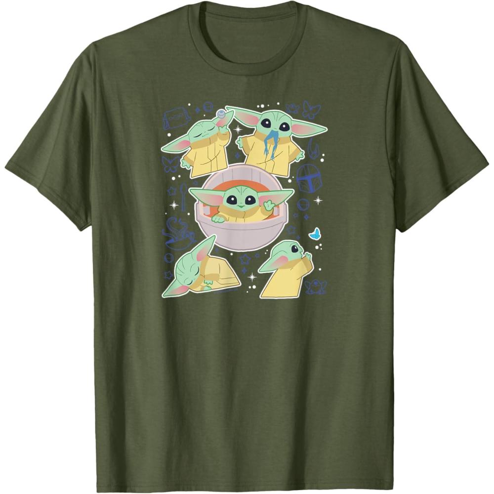Star Wars – The Mandalorian Grogu Stickers T-Shirt(Olive Green)