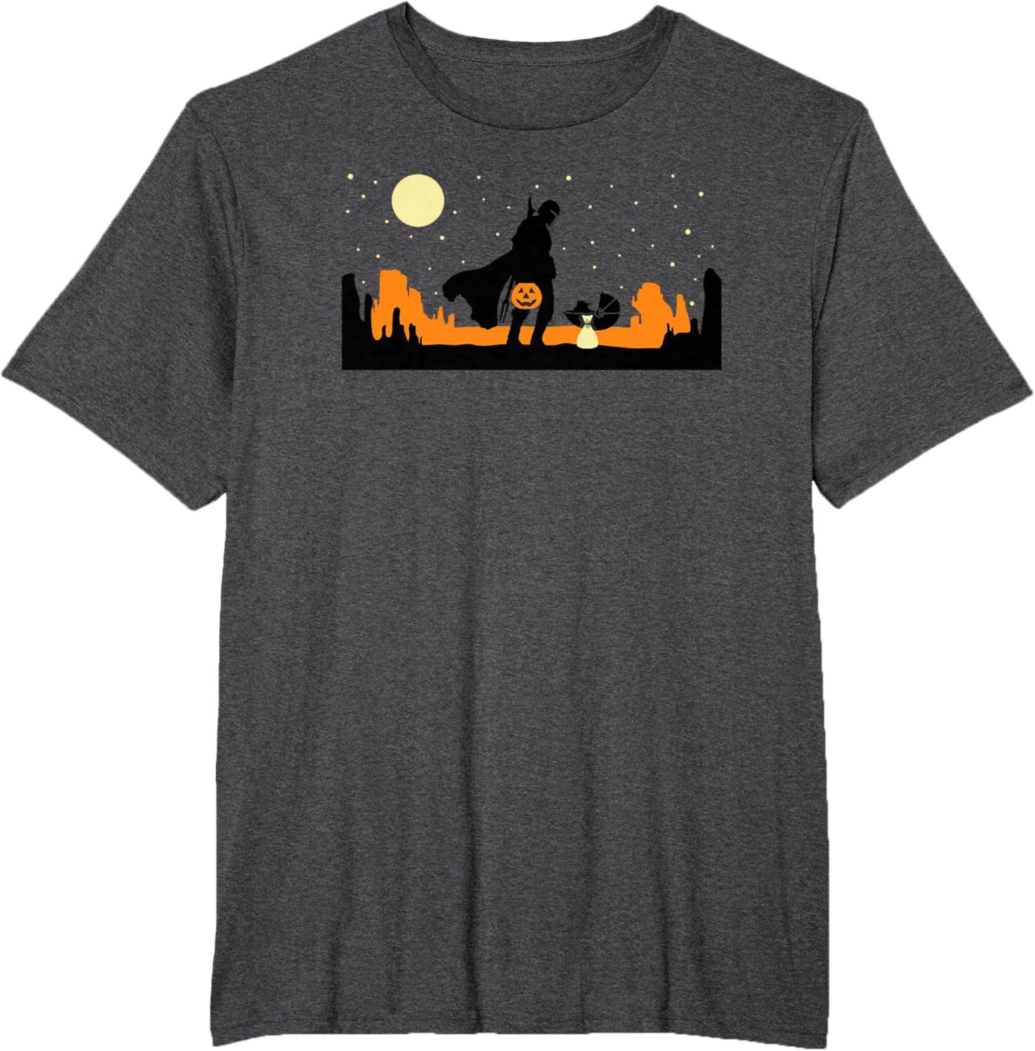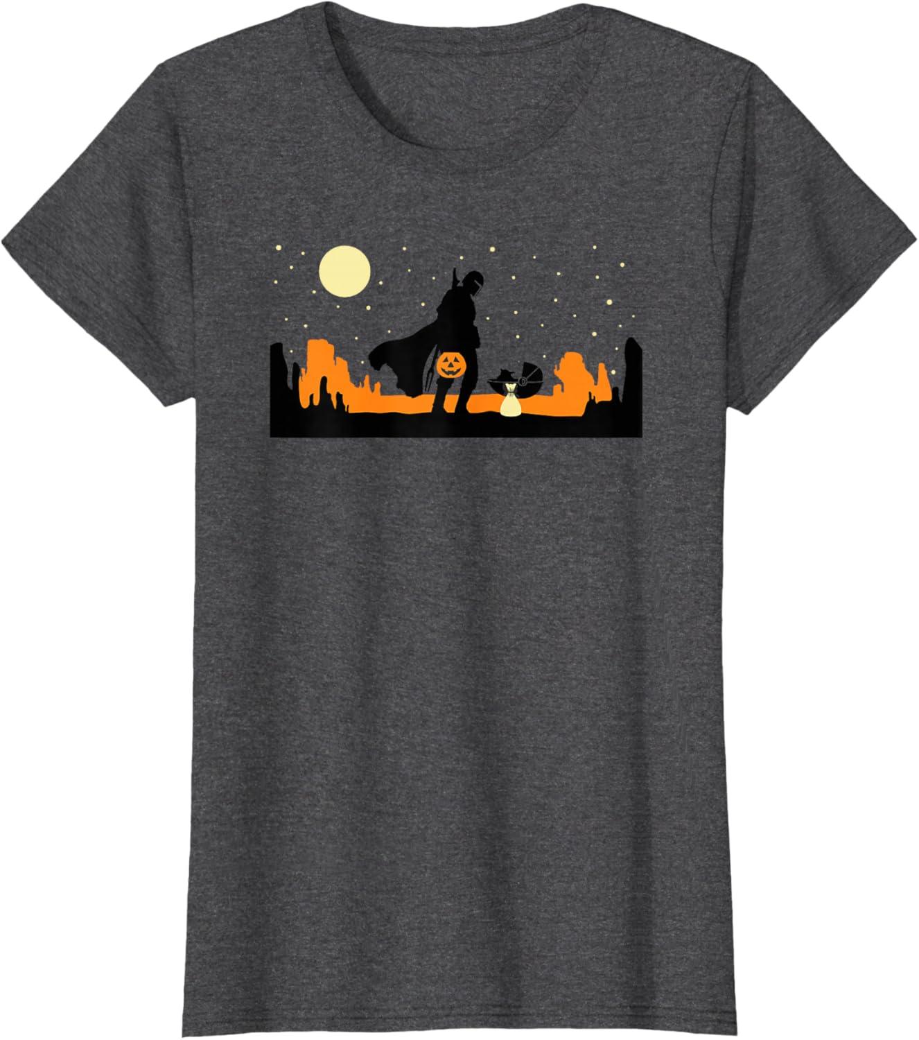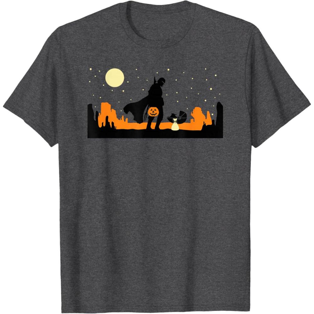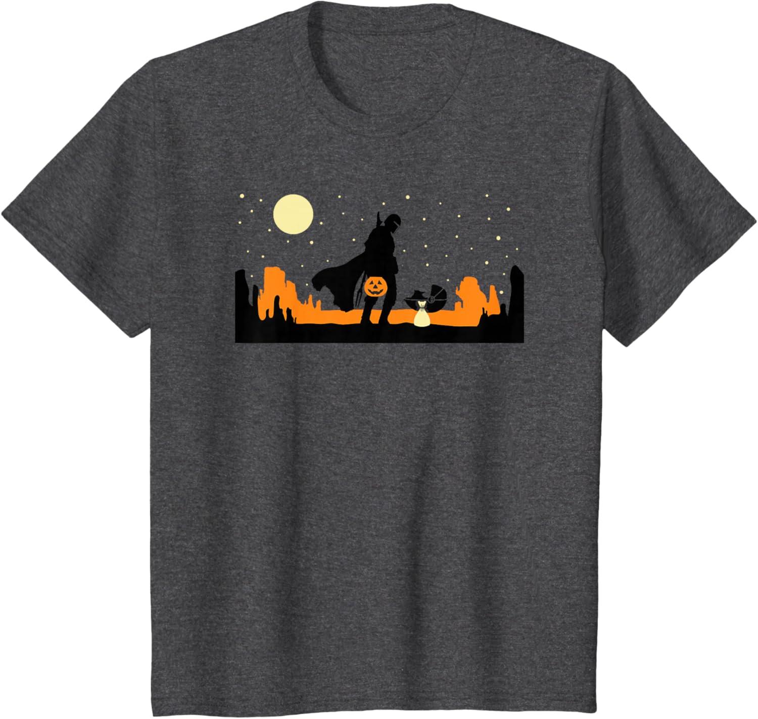 Star Wars The Mandalorian Halloween Candy Hunters Silhouette T-Shirt(Dark Heather Grey)