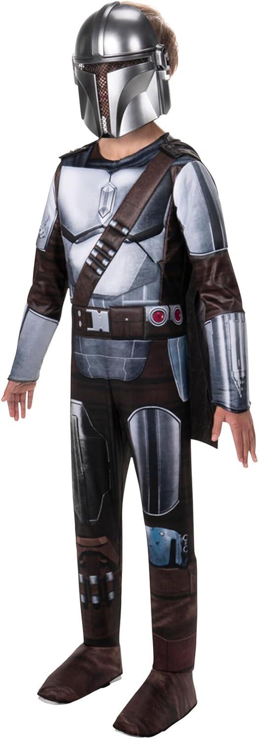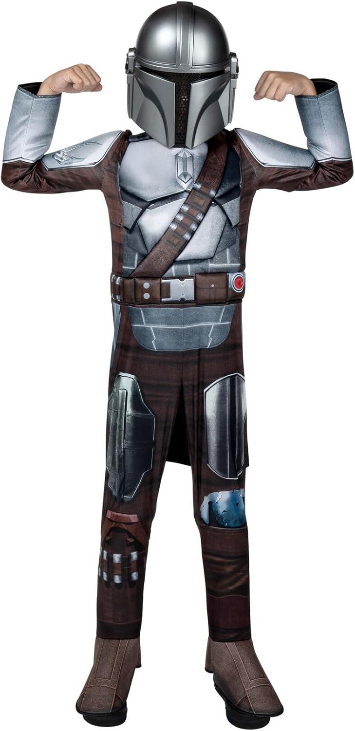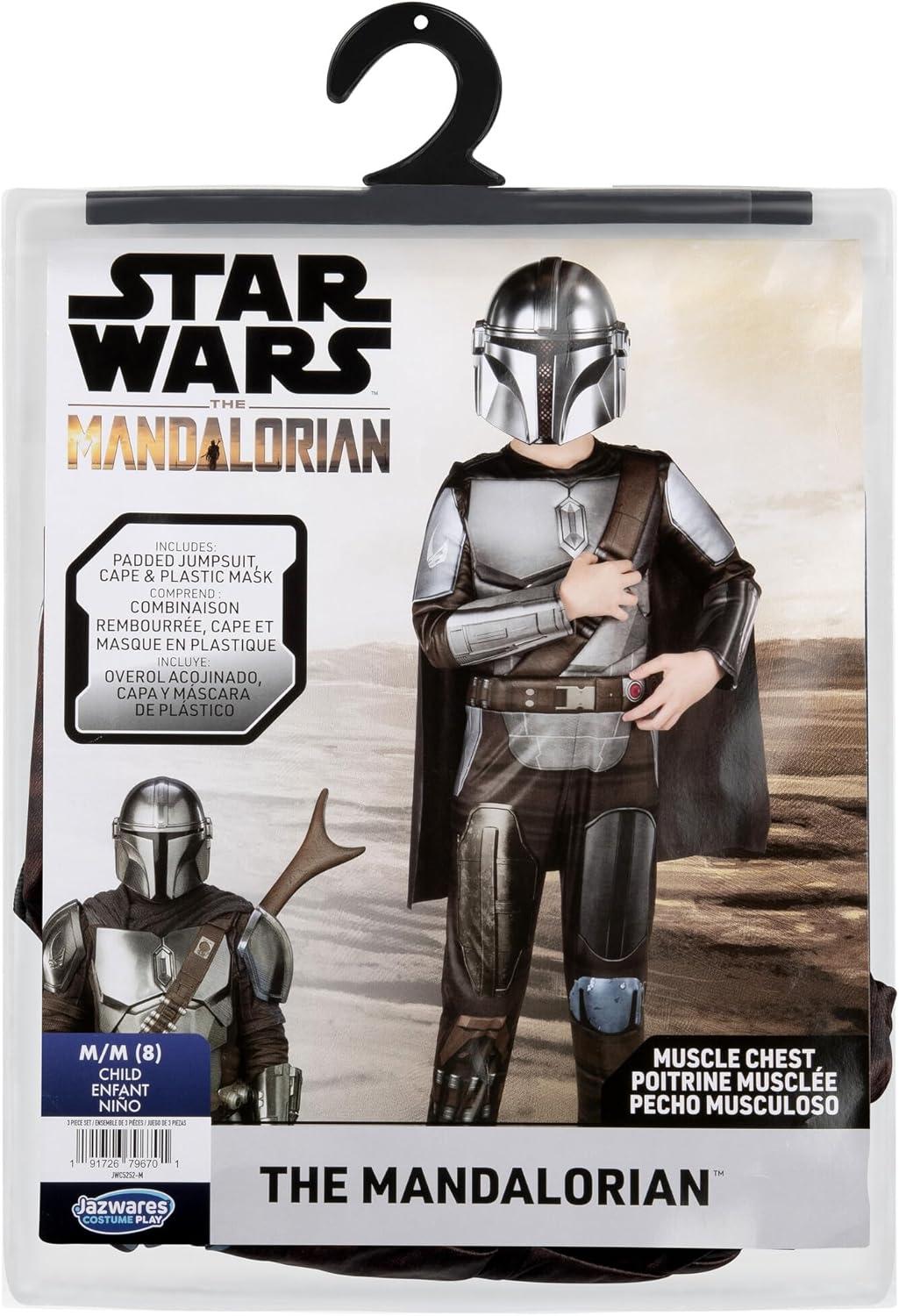 Star Wars The Mandalorian Official Youth Costume - Premium Quality Padded Jumpsuit with Plastic Mask and Detachable Cape(Large)