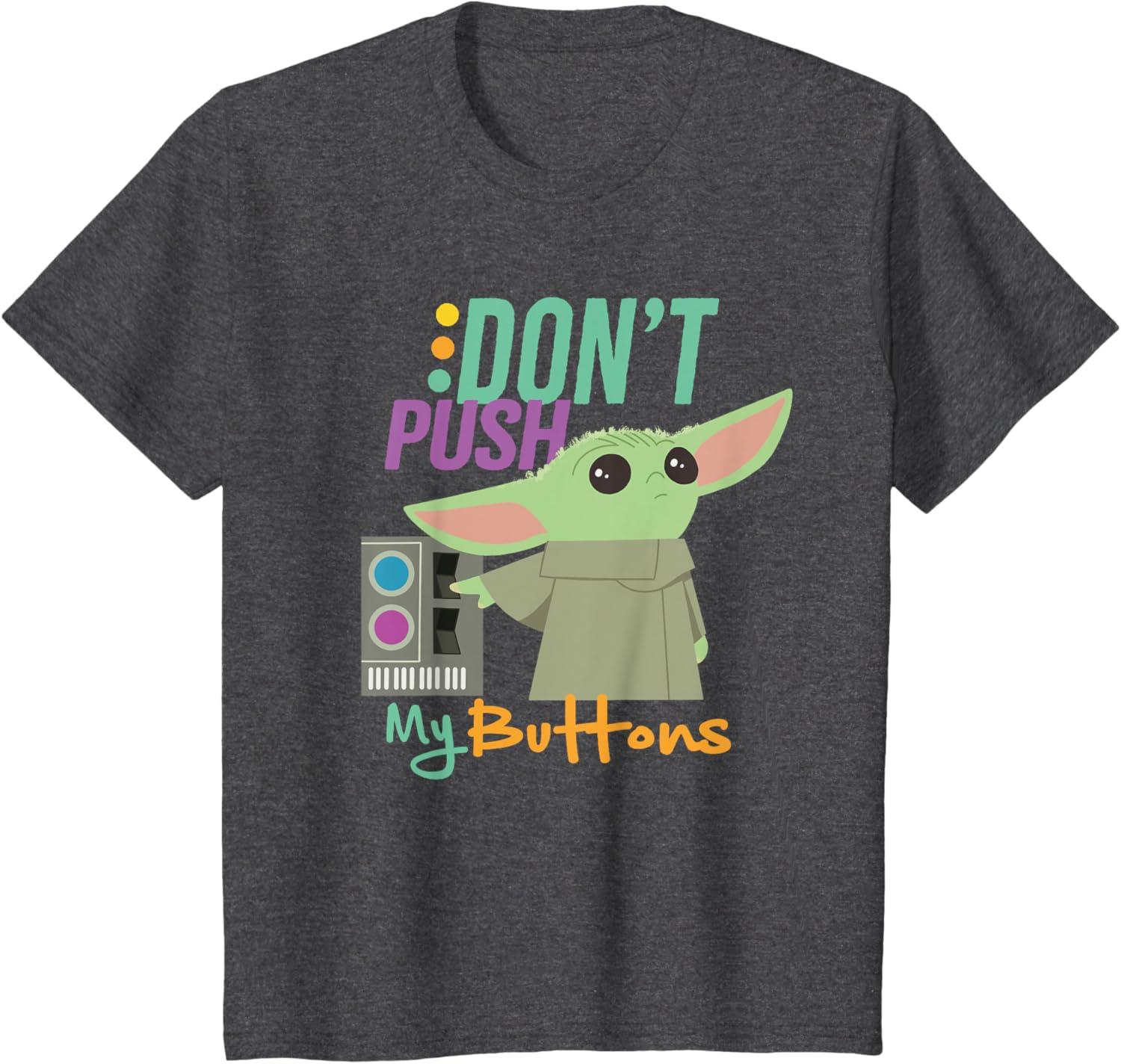 Star Wars The Mandalorian The Child Don’t Touch My Buttons T-Shirt(Dark Heather Grey)