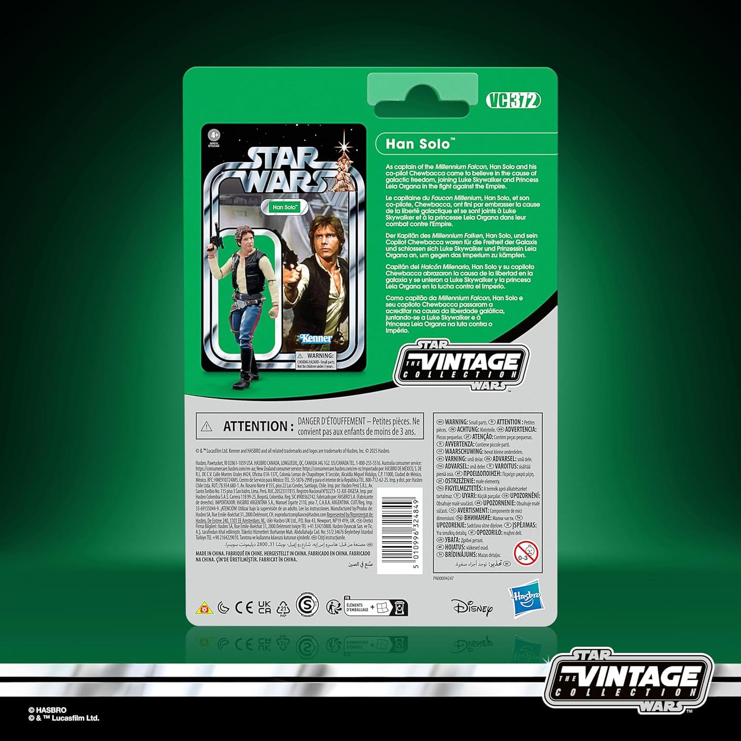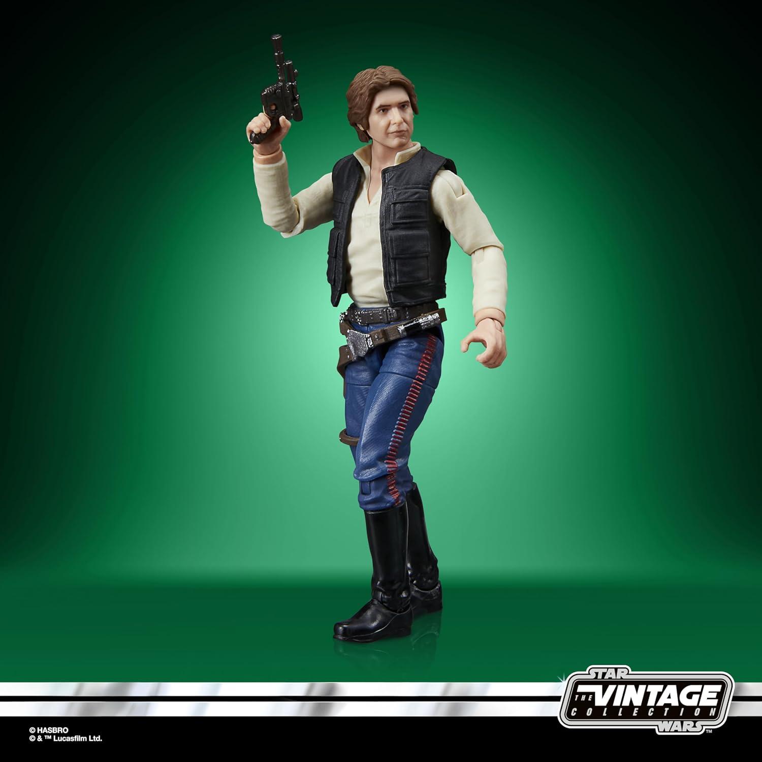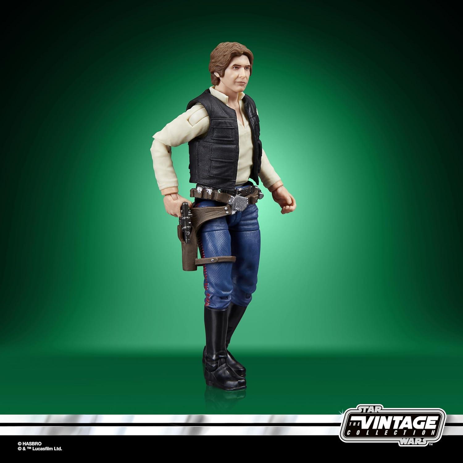 Celebrate the legacy of Star Wars with premium vehicles, playsets, and action figures from Star Wars The Vintage Collection. (Additional products each sold separately. Subject to availability.) Based on Han Solo from Star Wars: A New Hope, this 3.75-inch-scale figure makes a great addition to any fan’s collection. Inspired by the original line, these collectibles feature premium detail and design across product and packaging, as well as collector-grade deco that fans have come to know and love. May the Force be with you! Star Wars products are produced by Hasbro under license from Lucasfilm Ltd HASBRO and all related trademarks and logos are trademarks of Hasbro, Inc.