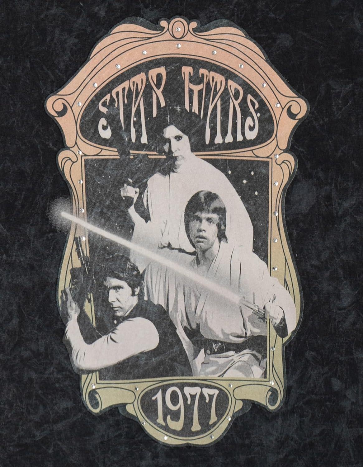 Show off your love for the iconic STAR WARS characters with this Princess Leia, Han Solo, and Luke Skywalker t-shirt. Featuring a bold graphic of the trio, this adult-sized mineral wash vintage shirt is perfect for any fan. Made from high-quality materials, it's comfortable and durable. Wear it to your next movie marathon or comic convention and let everyone know you're a true fan. Get yours today and join the rebellion.
