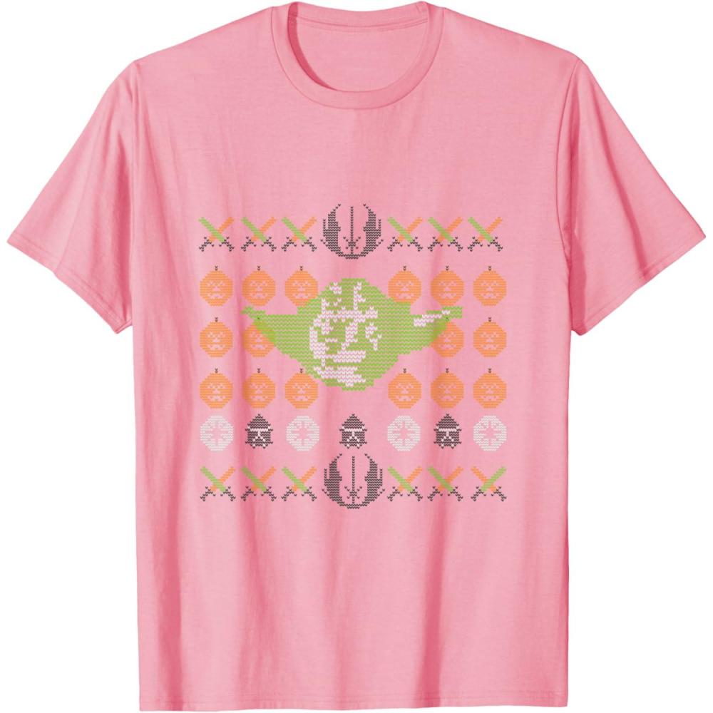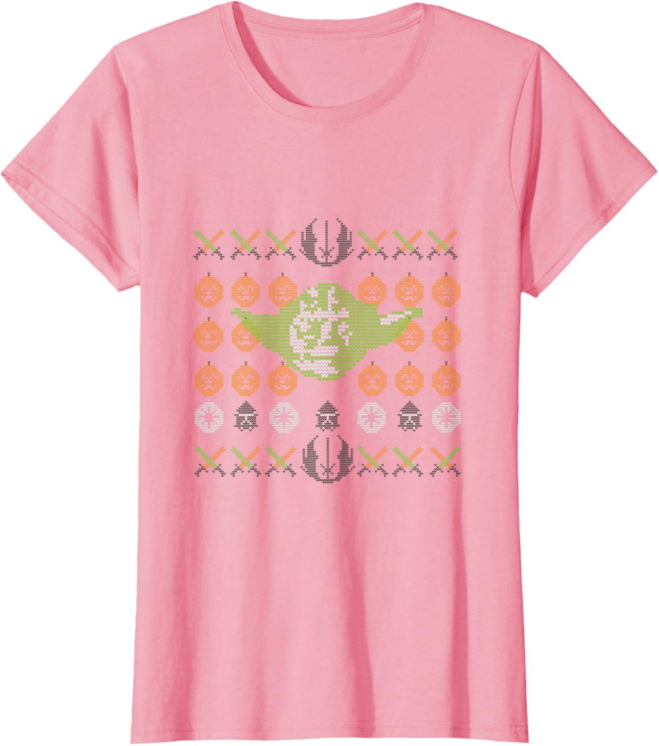 Star Wars Yoda Jedi Ugly Christmas Sweater for Halloween T-Shirt(Pink)