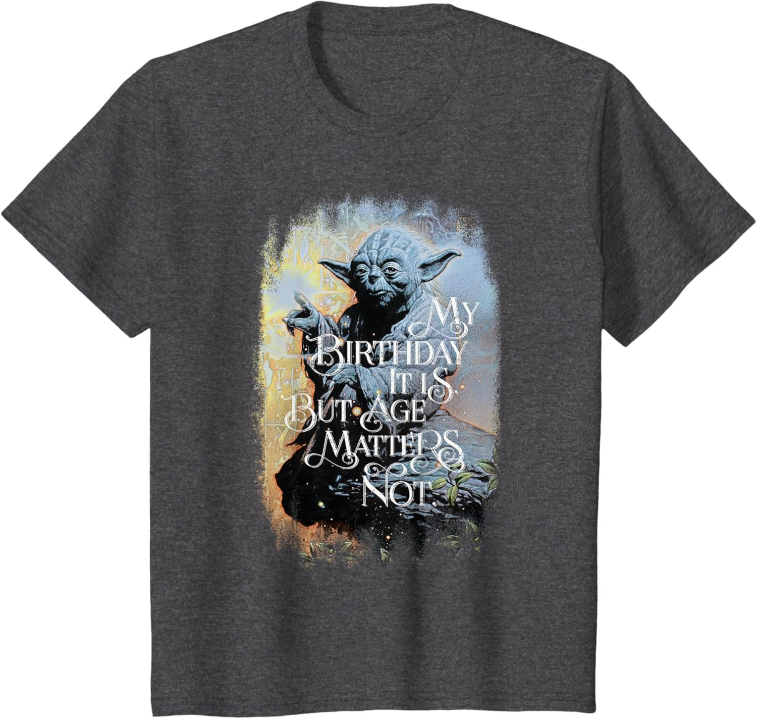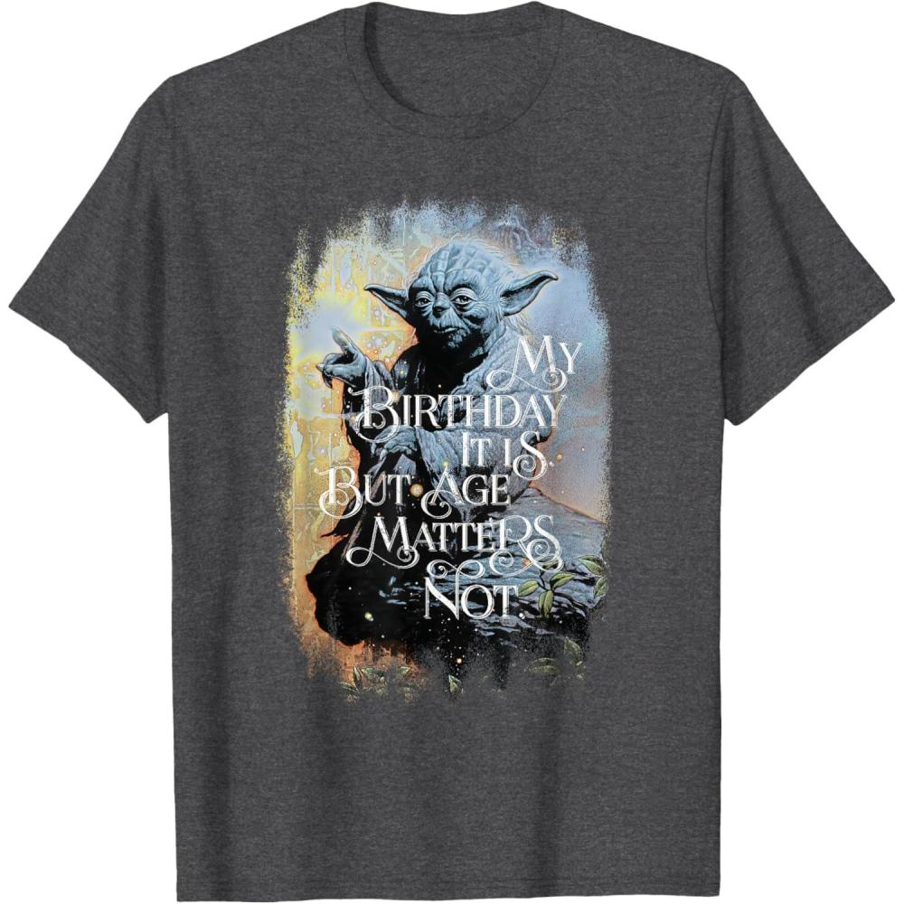 Star Wars Yoda “My Birthday It Is But Age Matters Not” T-Shirt(Dark Heather Grey)