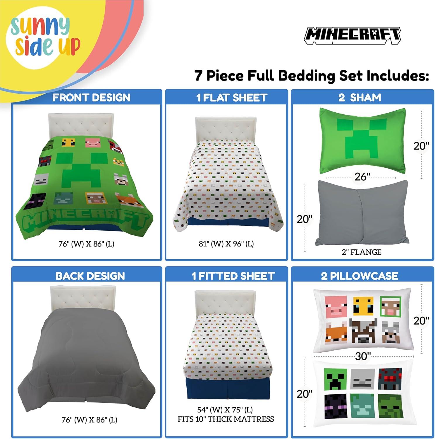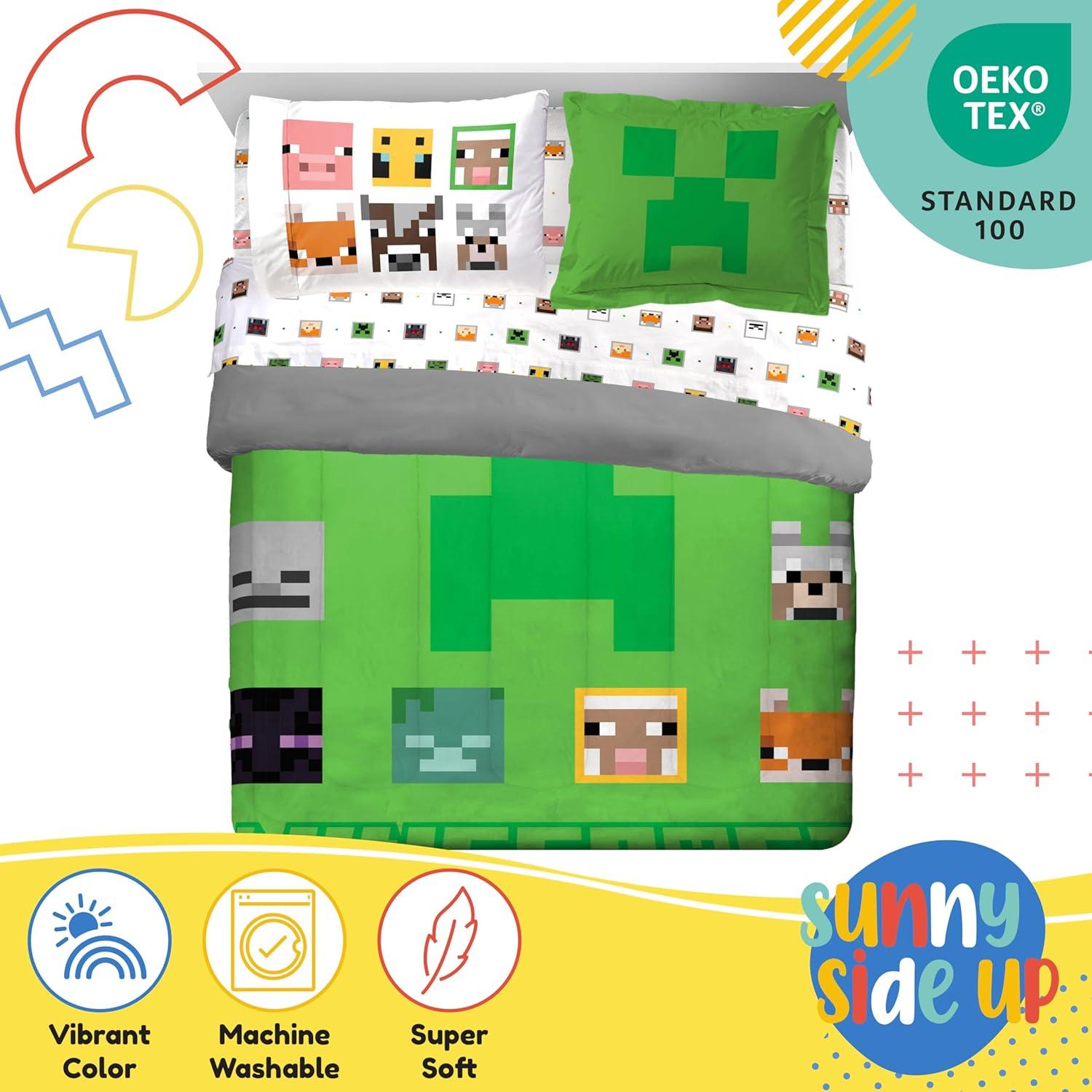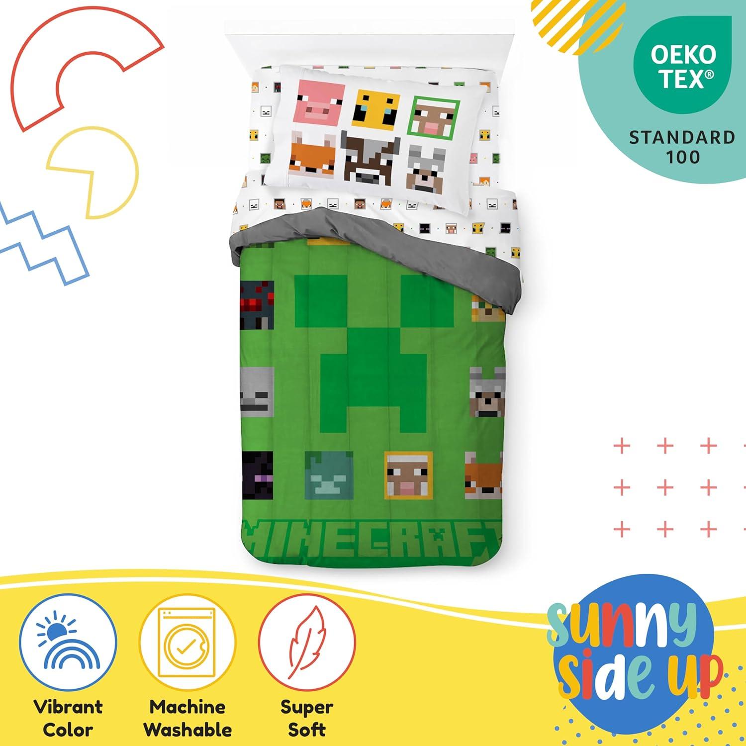 Sunny Side Up Star Wars Young Jedi Adventures Twin Comforter Set – 5 Piece Kids Bedding Includes Comforter, Sheets & Pillow Cover – Super Soft Microfiber Bed Set(Green – Minecraft)