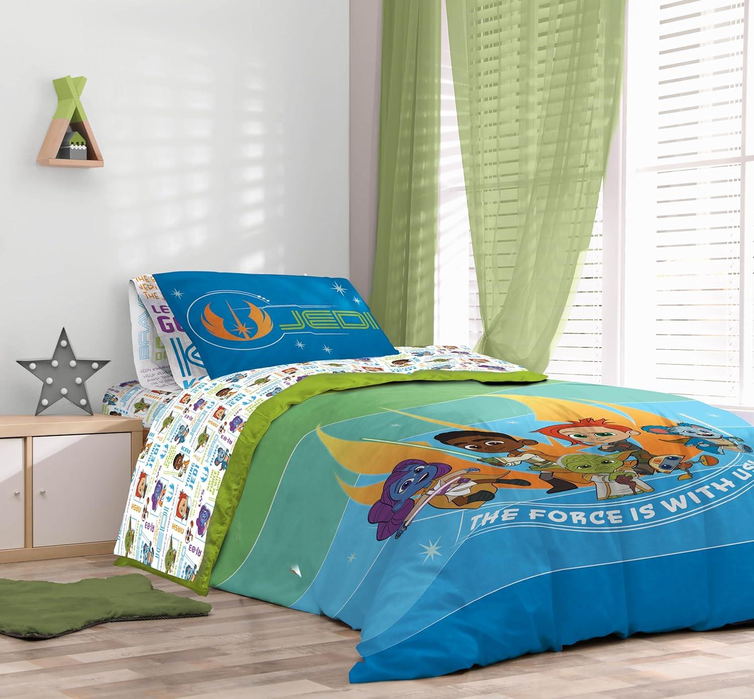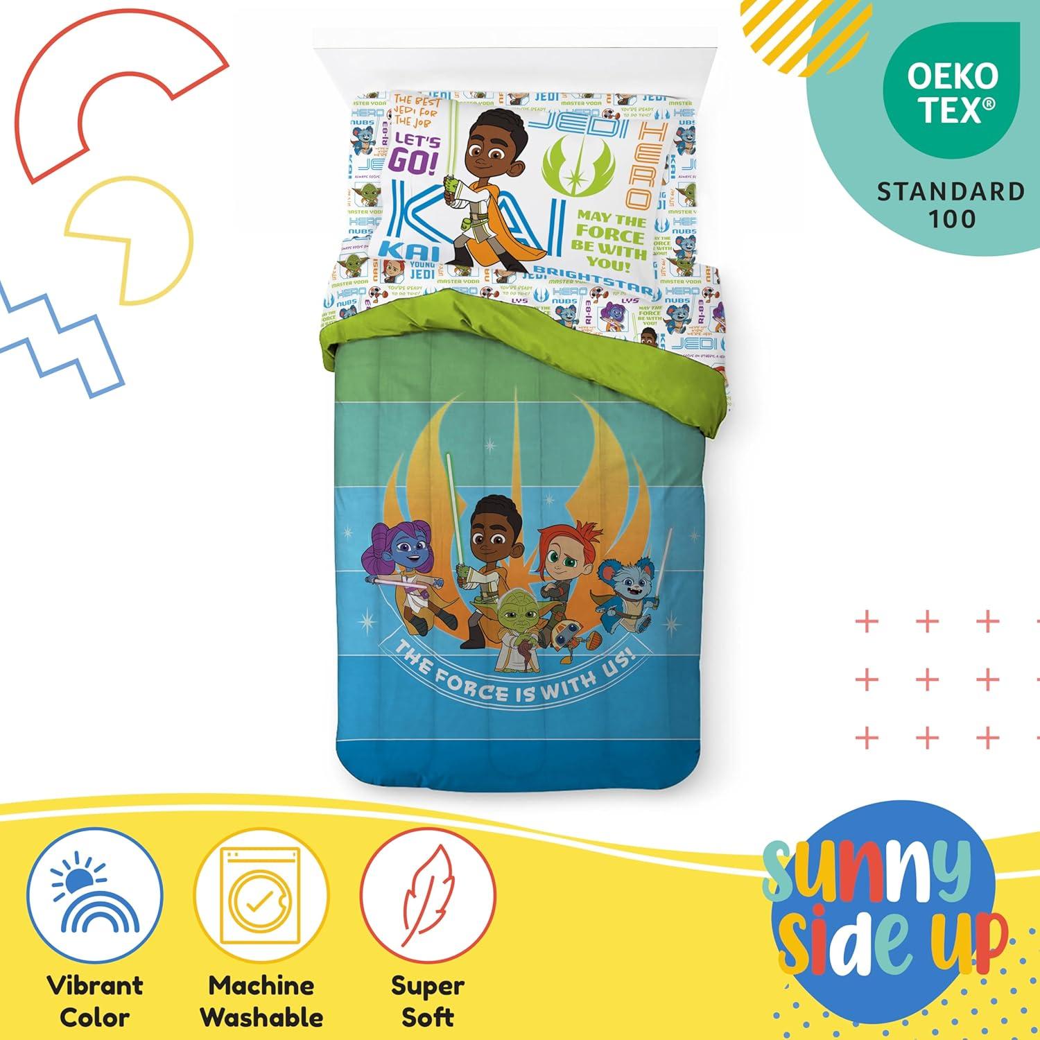 Sunny Side Up Star Wars Young Jedi Adventures Twin Comforter Set – 5 Piece Kids Bedding Includes Comforter, Sheets & Pillow Cover – Super Soft Microfiber Bed Set(Multi – Young Jedi)