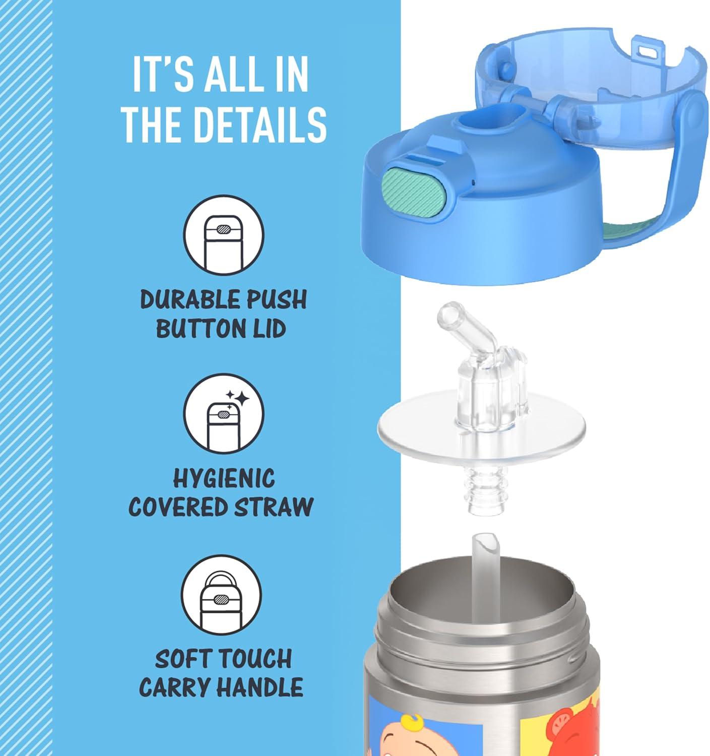 THERMOS FUNTAINER Water Bottle with Straw – 12 Ounce – Kids Stainless Steel Vacuum Insulated Water Bottle with Lid, Mandalorian(Cocomelon)