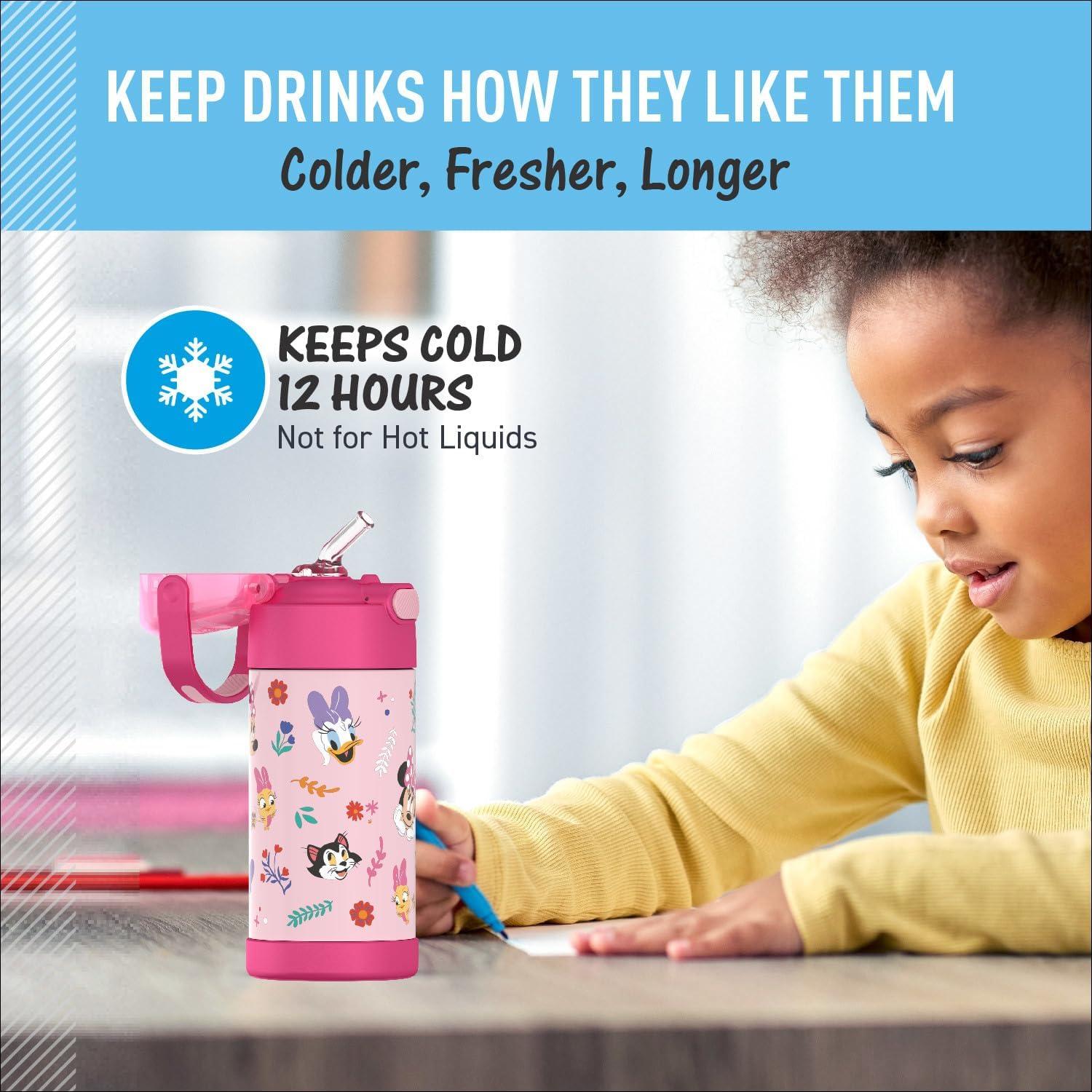 THERMOS FUNTAINER Water Bottle with Straw – 12 Ounce – Kids Stainless Steel Vacuum Insulated Water Bottle with Lid, Mandalorian(PRESCHOOL MINNIE)