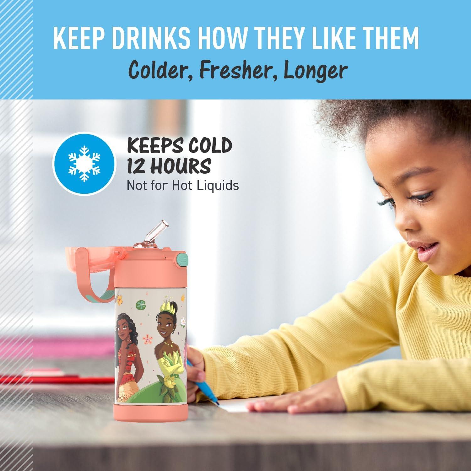 THERMOS FUNTAINER Water Bottle with Straw – 12 Ounce – Kids Stainless Steel Vacuum Insulated Water Bottle with Lid, Mandalorian(Princess)
