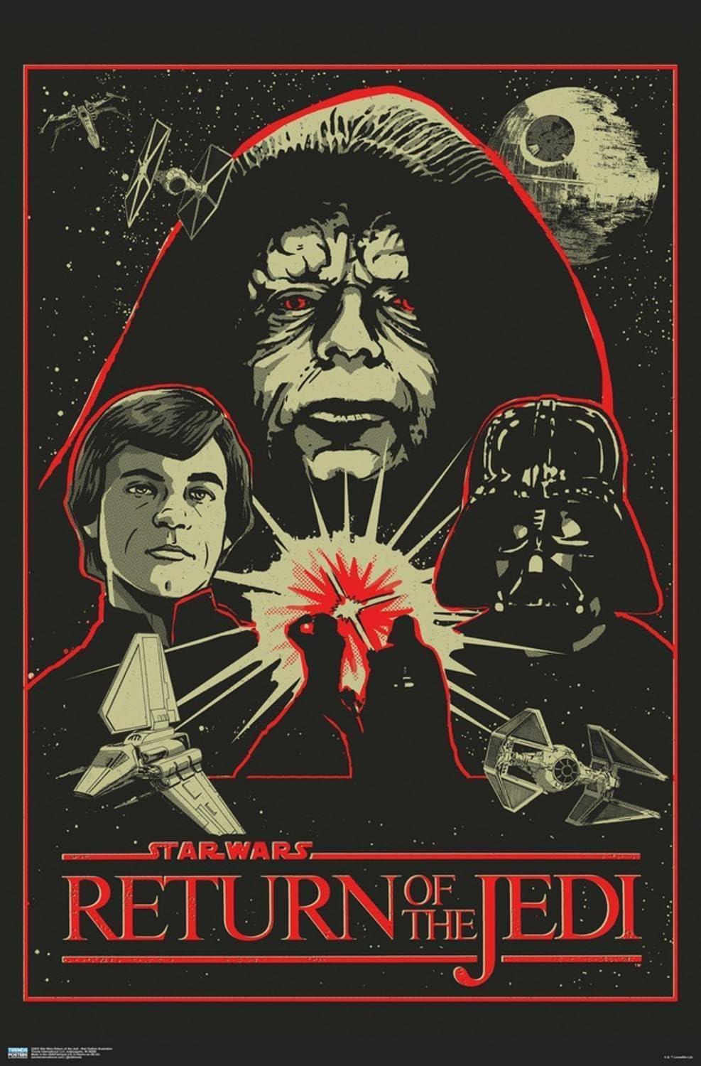 Trends International Star Wars: Return of the Jedi – Red Outline Illustration Wall Poster, 34L x 22.4W, Premium Unframed Version(Silver Framed Version)