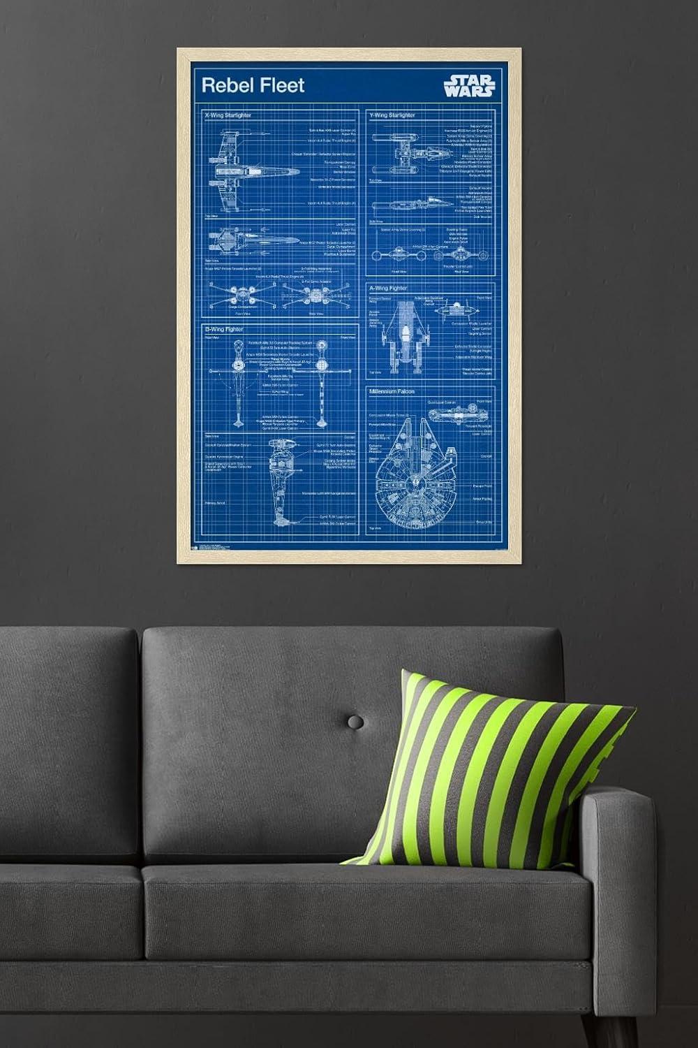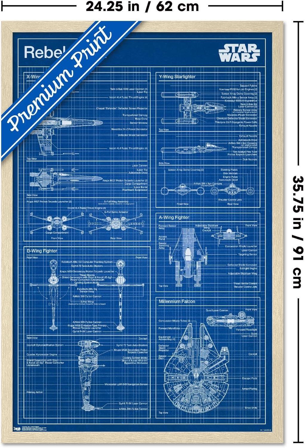 Trends International Star Wars: Saga – Rebel Blueprint Wall Poster, 22.375″ x 34″, Unframed Version(Blonde Framed Version)
