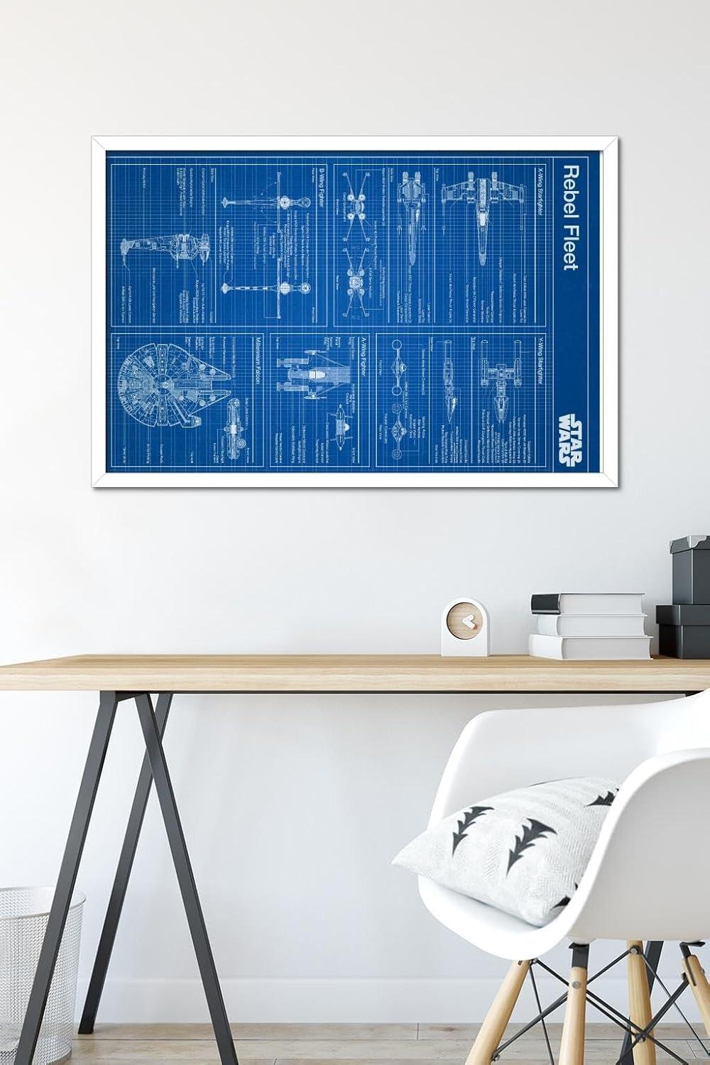 Trends International Star Wars: Saga – Rebel Blueprint Wall Poster, 22.375″ x 34″, Unframed Version(White Framed Version)