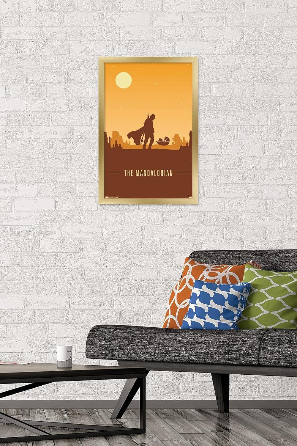 Trends International Star Wars: The Mandalorian – Mando and The Child At Dusk Wall Poster, 22.375″ x 34″, Unframed Version(Gold Framed Version)