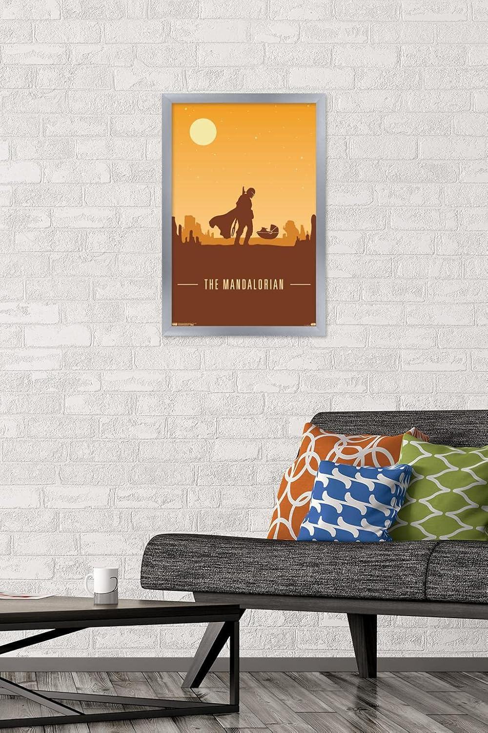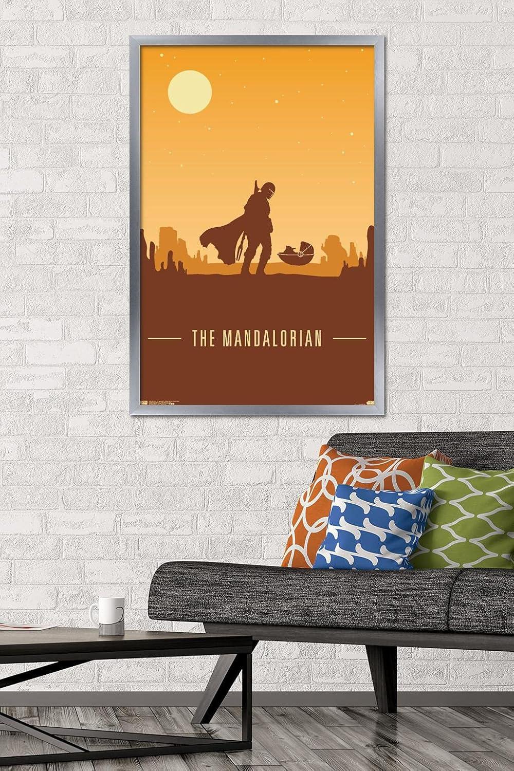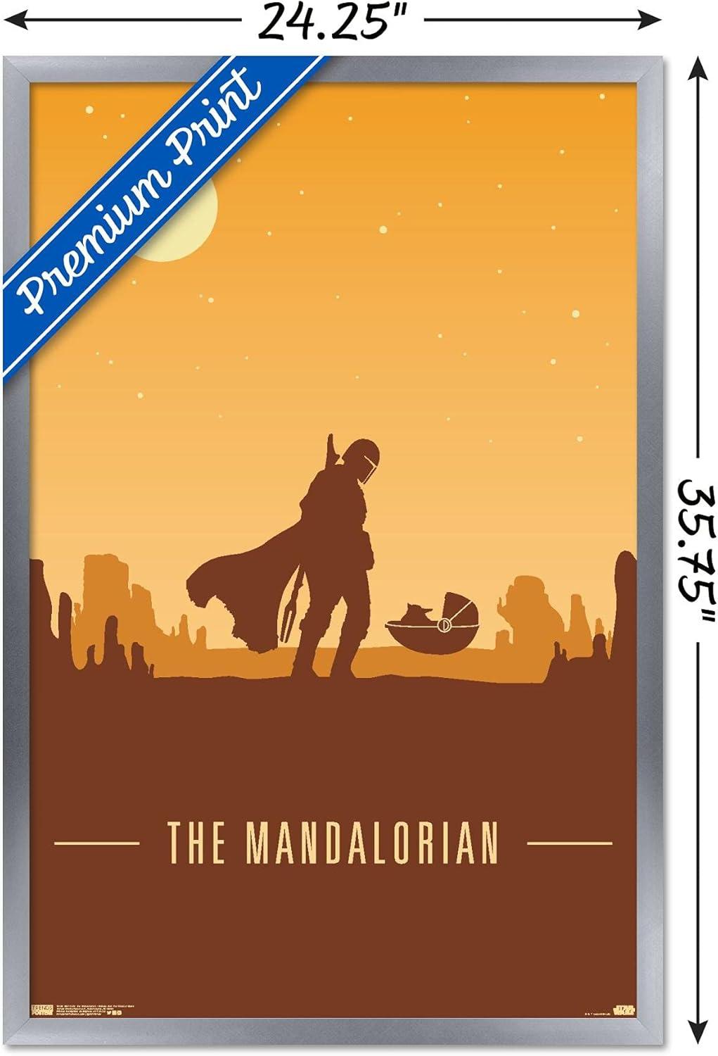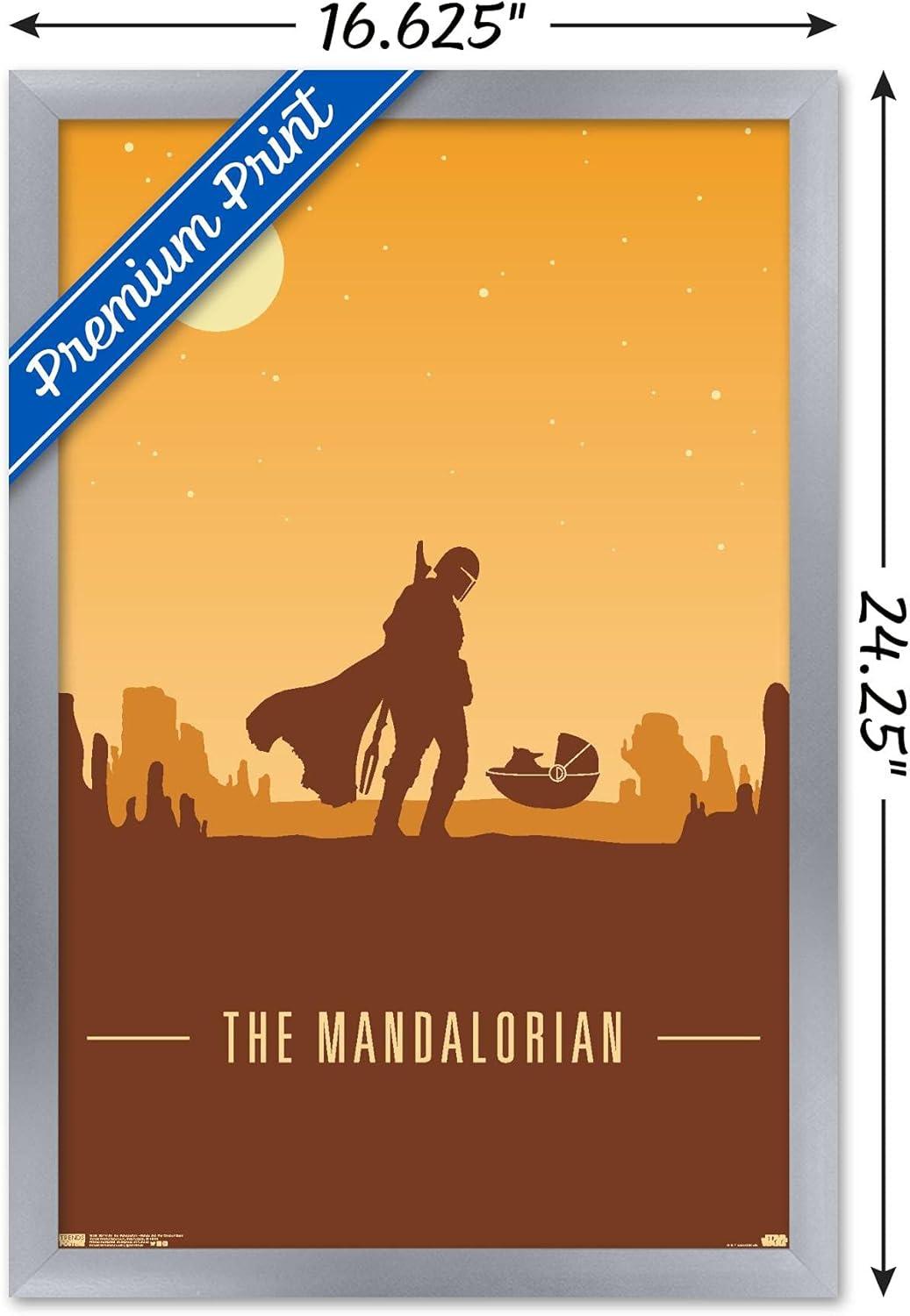 Trends International Star Wars: The Mandalorian – Mando and The Child At Dusk Wall Poster, 22.375″ x 34″, Unframed Version(Silver Framed Version)